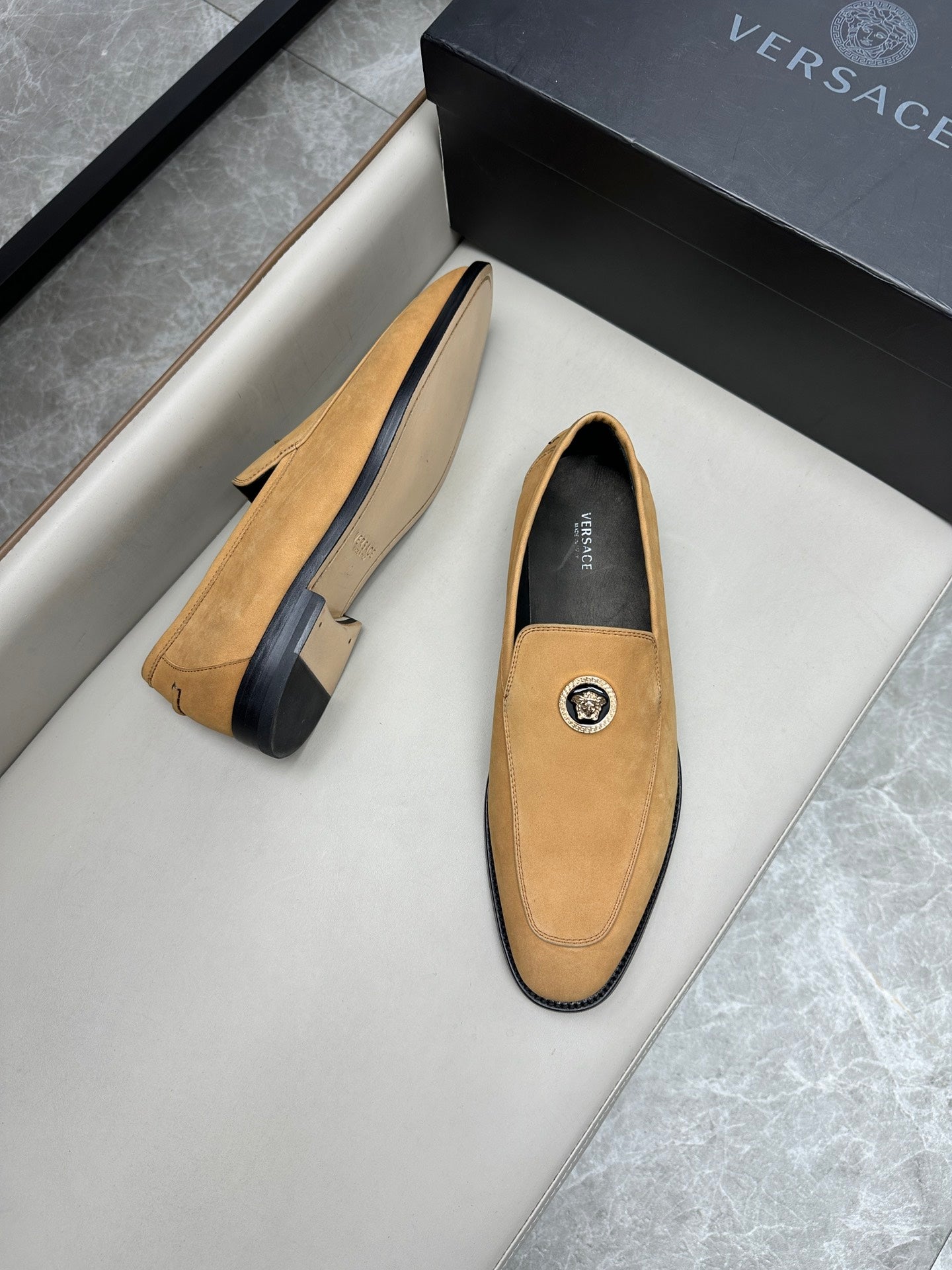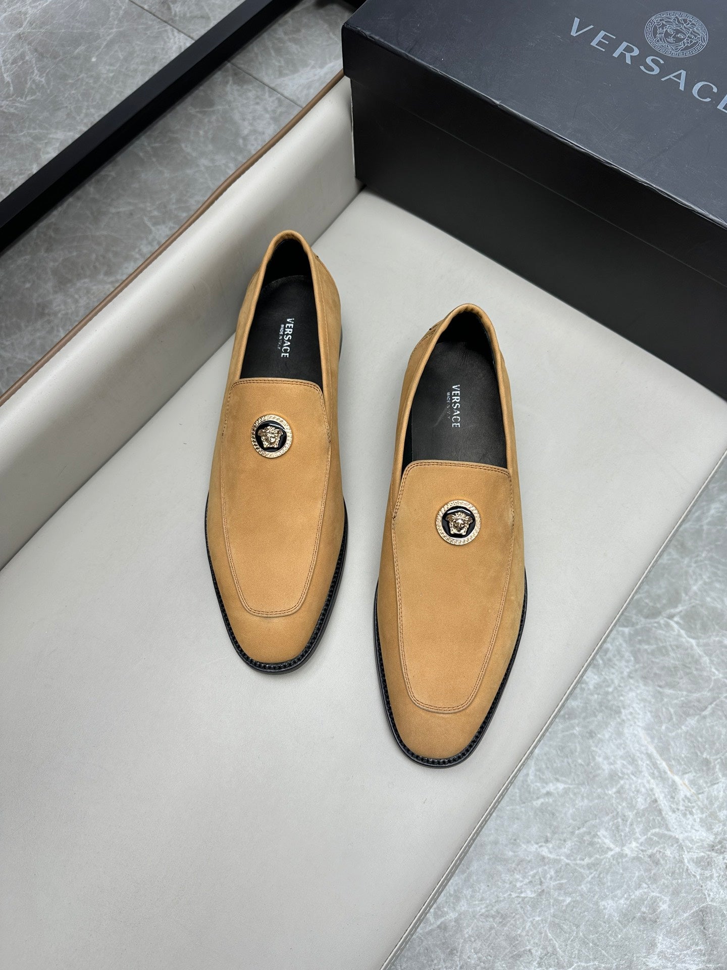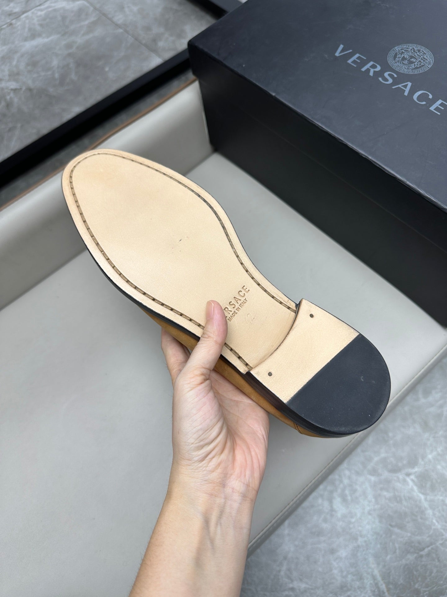 Elevate your professional style with Versace Business Leather Shoes, expertly crafted from imported frosted cowhide. These luxurious shoes feature genuine leather soles for durability and comfort. Designed with exclusive logo insoles and a soft cowhide lining, they offer both a fashionable appearance and an exceptional fit. Available in sizes 39-44, with custom sizes 38, 45, and 46 upon request. Step up your game with the timeless elegance of Versace.