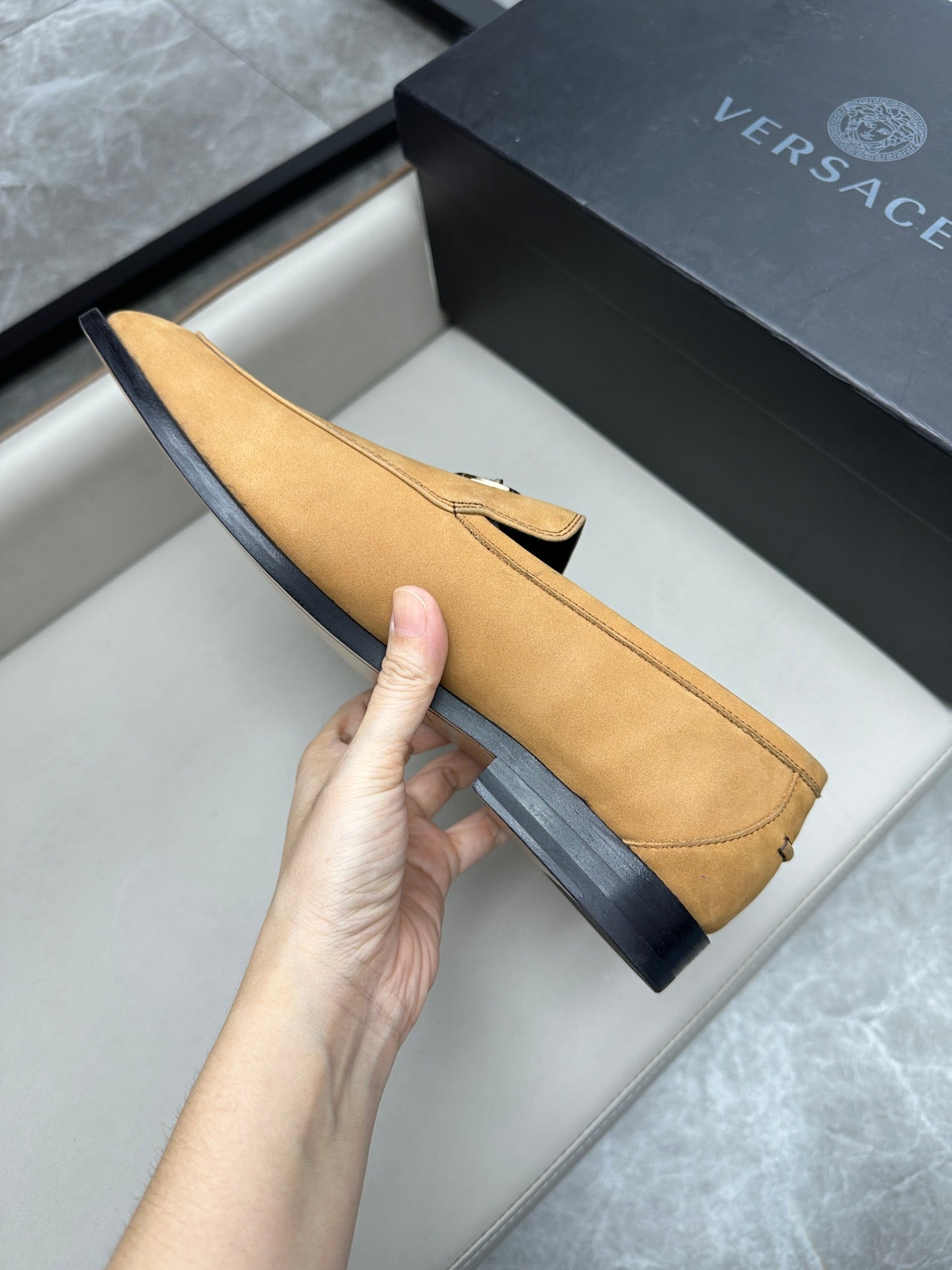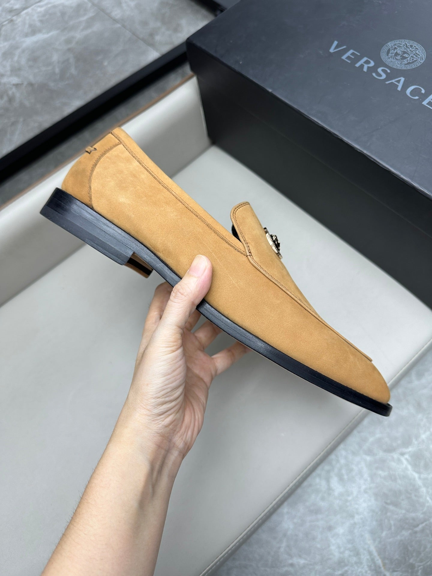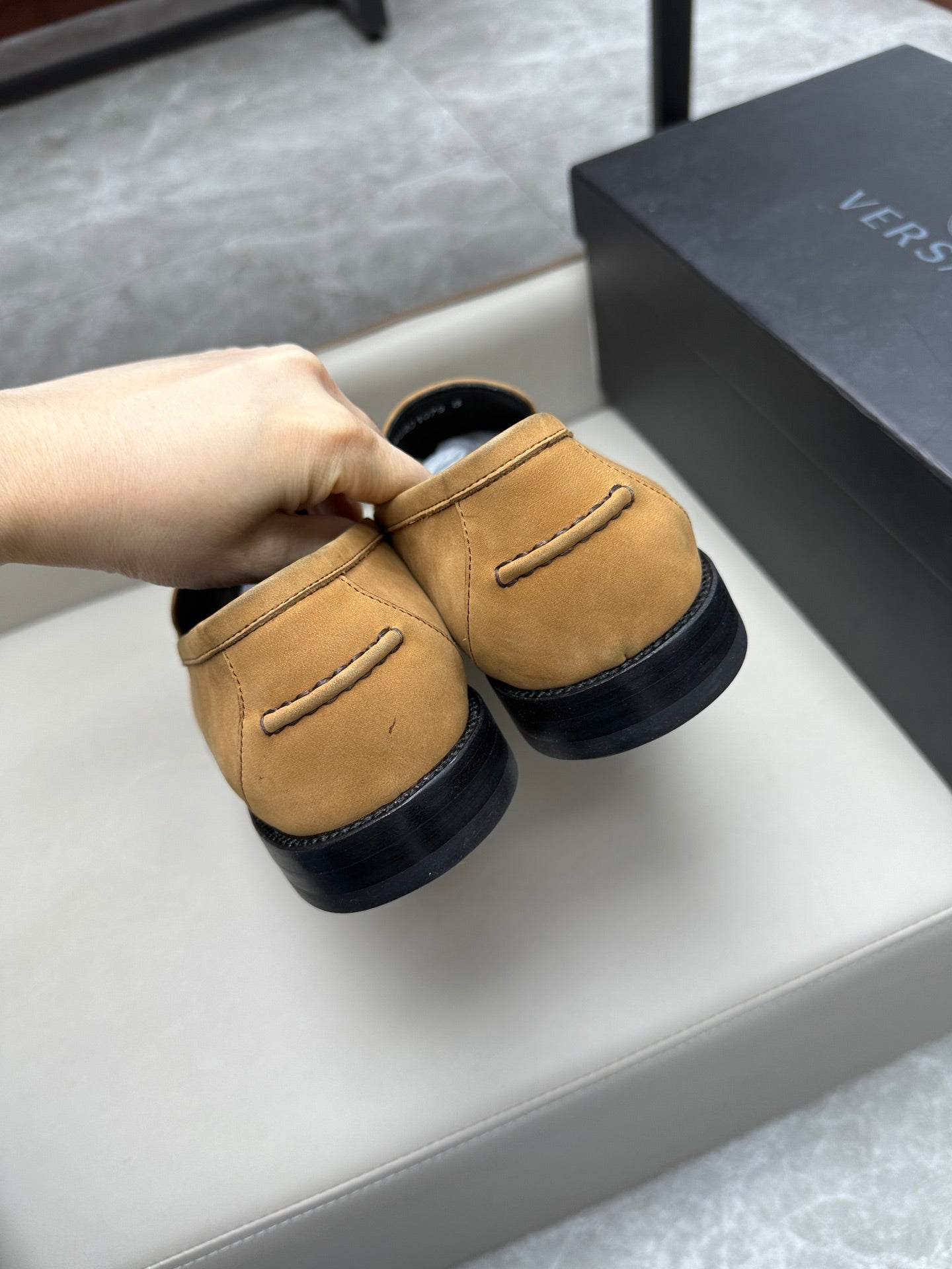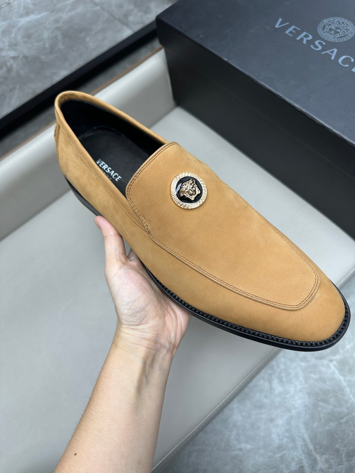 Elevate your professional style with Versace Business Leather Shoes, expertly crafted from imported frosted cowhide. These luxurious shoes feature genuine leather soles for durability and comfort. Designed with exclusive logo insoles and a soft cowhide lining, they offer both a fashionable appearance and an exceptional fit. Available in sizes 39-44, with custom sizes 38, 45, and 46 upon request. Step up your game with the timeless elegance of Versace.