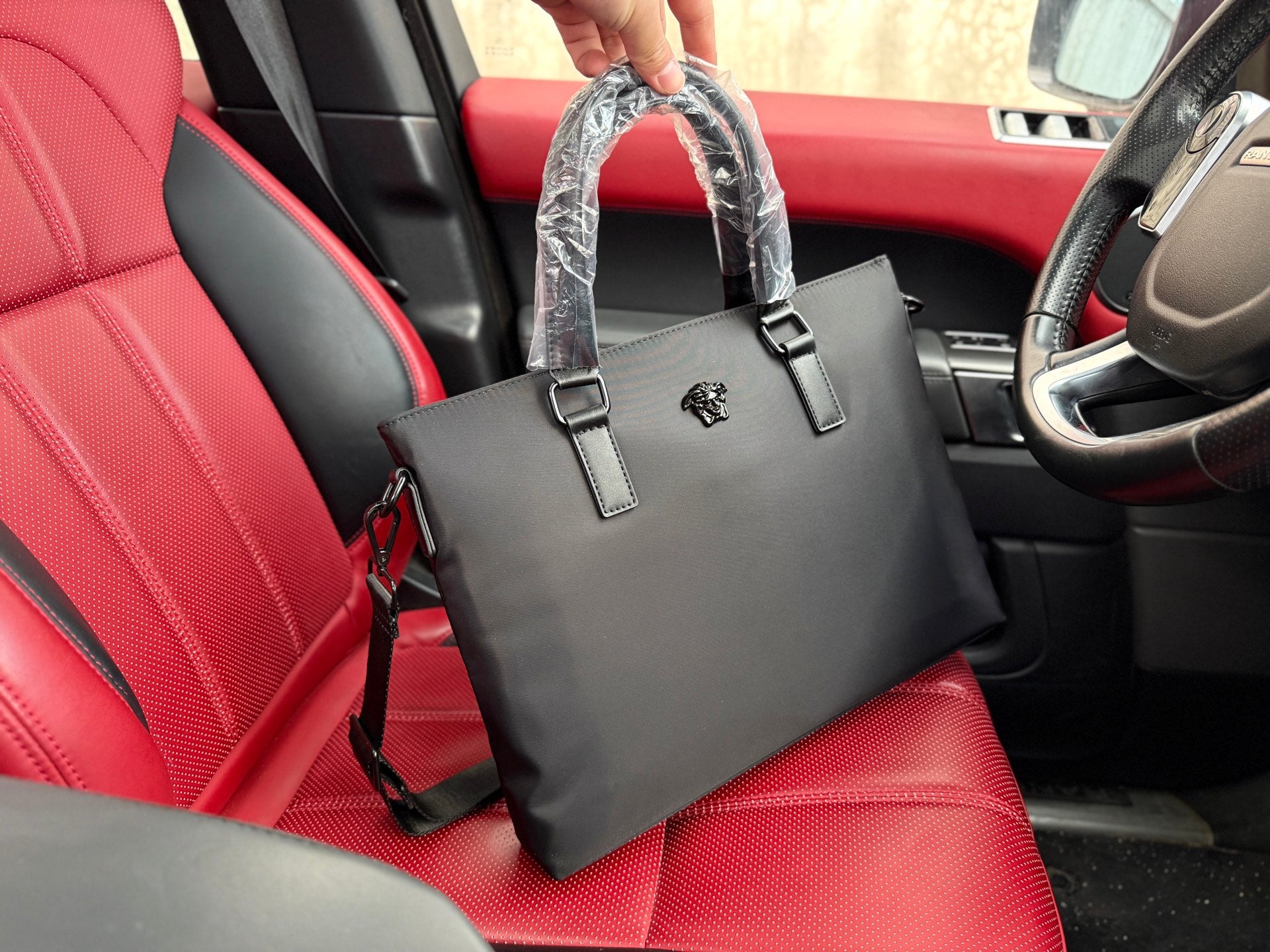Versace Men's Briefcase - Luxury Computer Bag with Crossbody Design