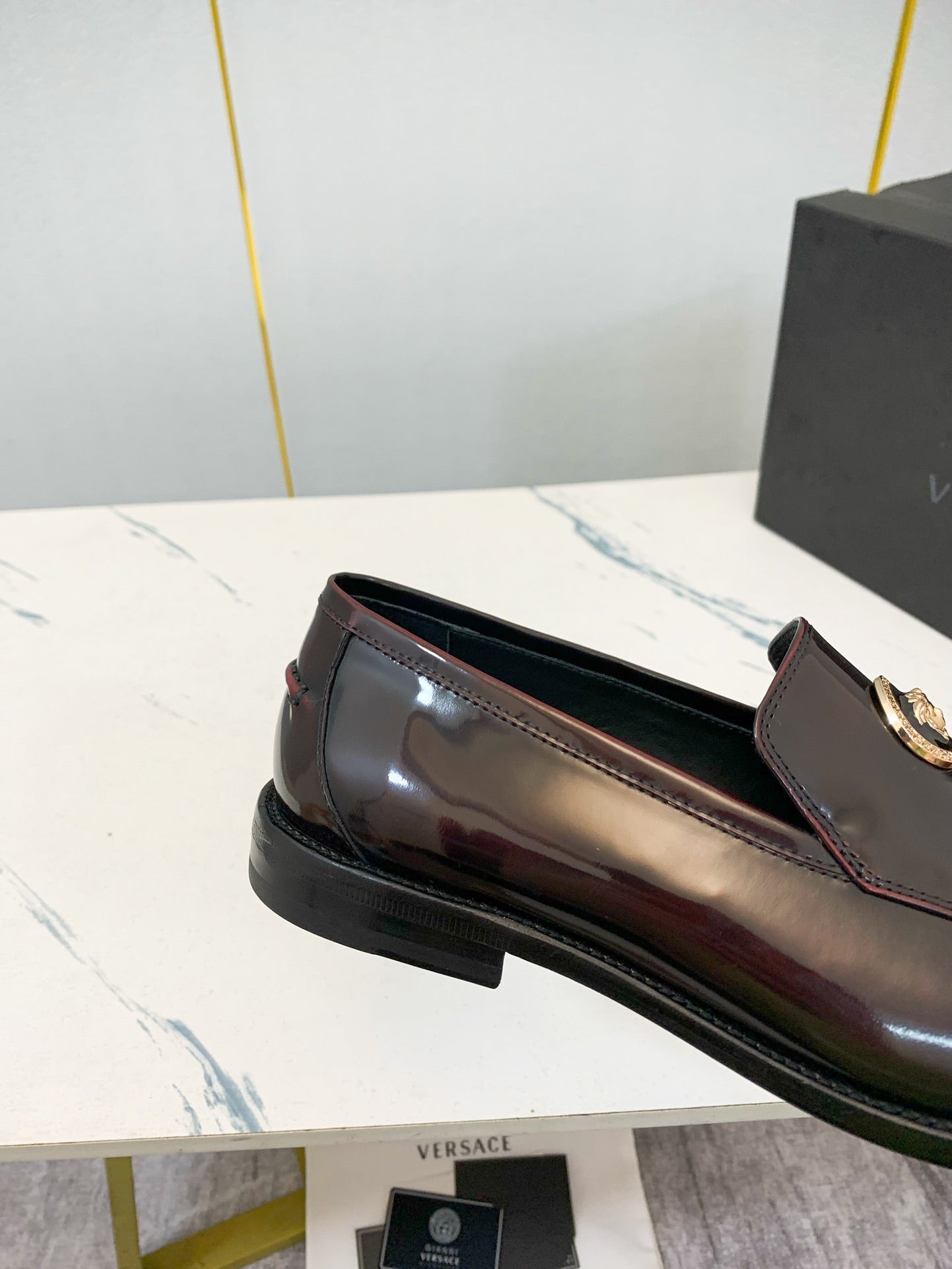 Elevate your style with the Versace Men's Business Leather Shoes, available in custom sizes 39-44. Crafted from premium, water-dyed first-layer cowhide, these shoes feature an exquisite high-end leather outsole and are adorned with iconic hardware details. Designed for the distinguished gentleman, these shoes boast professional craftsmanship and meticulous attention to detail. Experience unparalleled comfort and sophistication with every step you take. Perfect for any formal occasion or business setting.