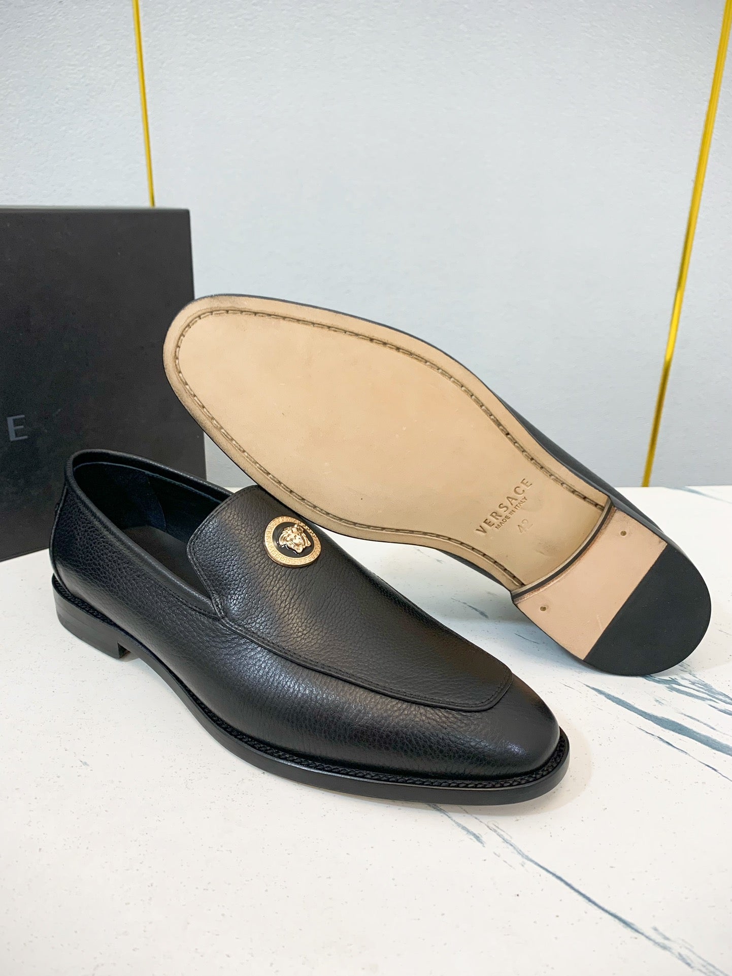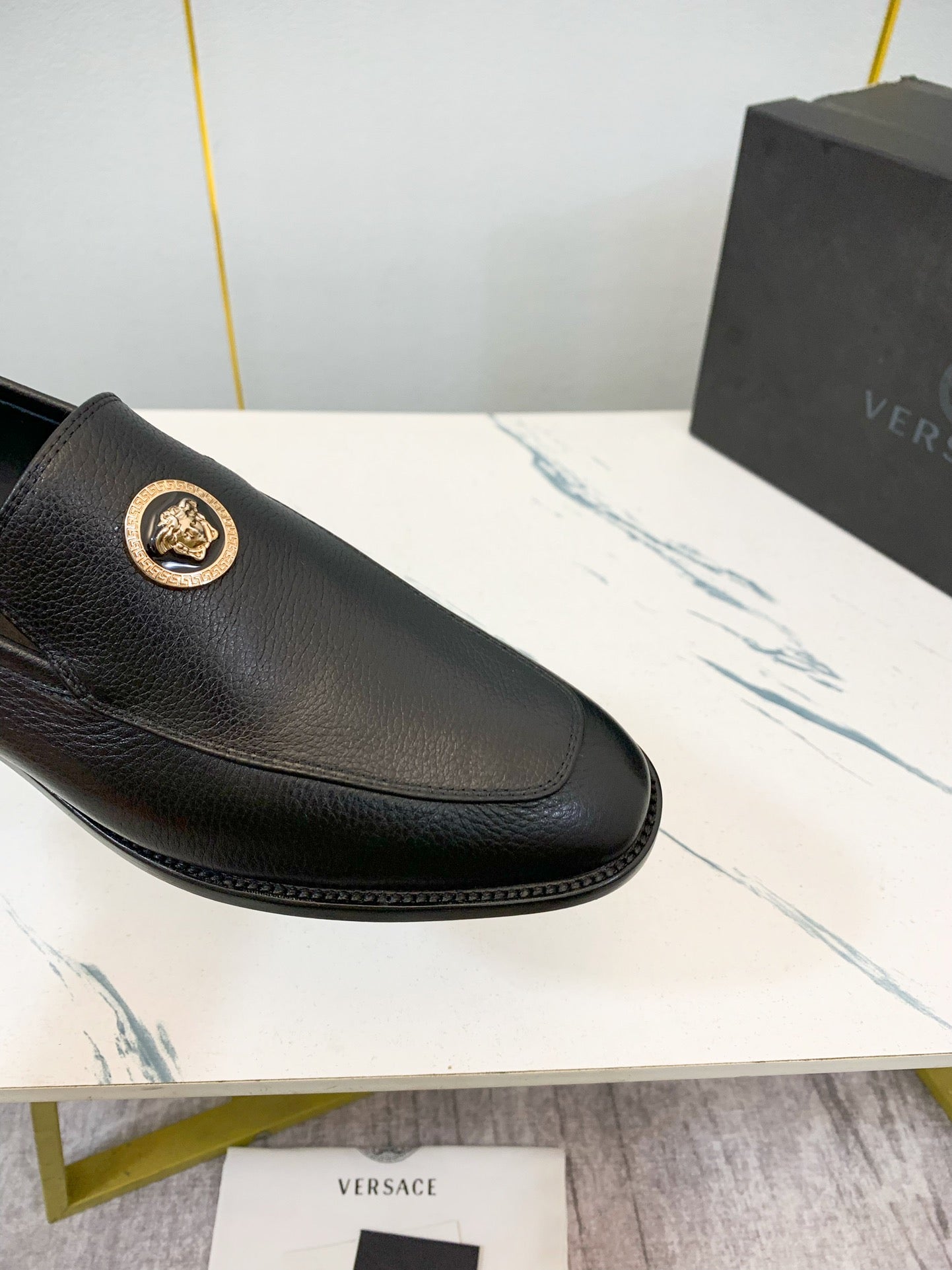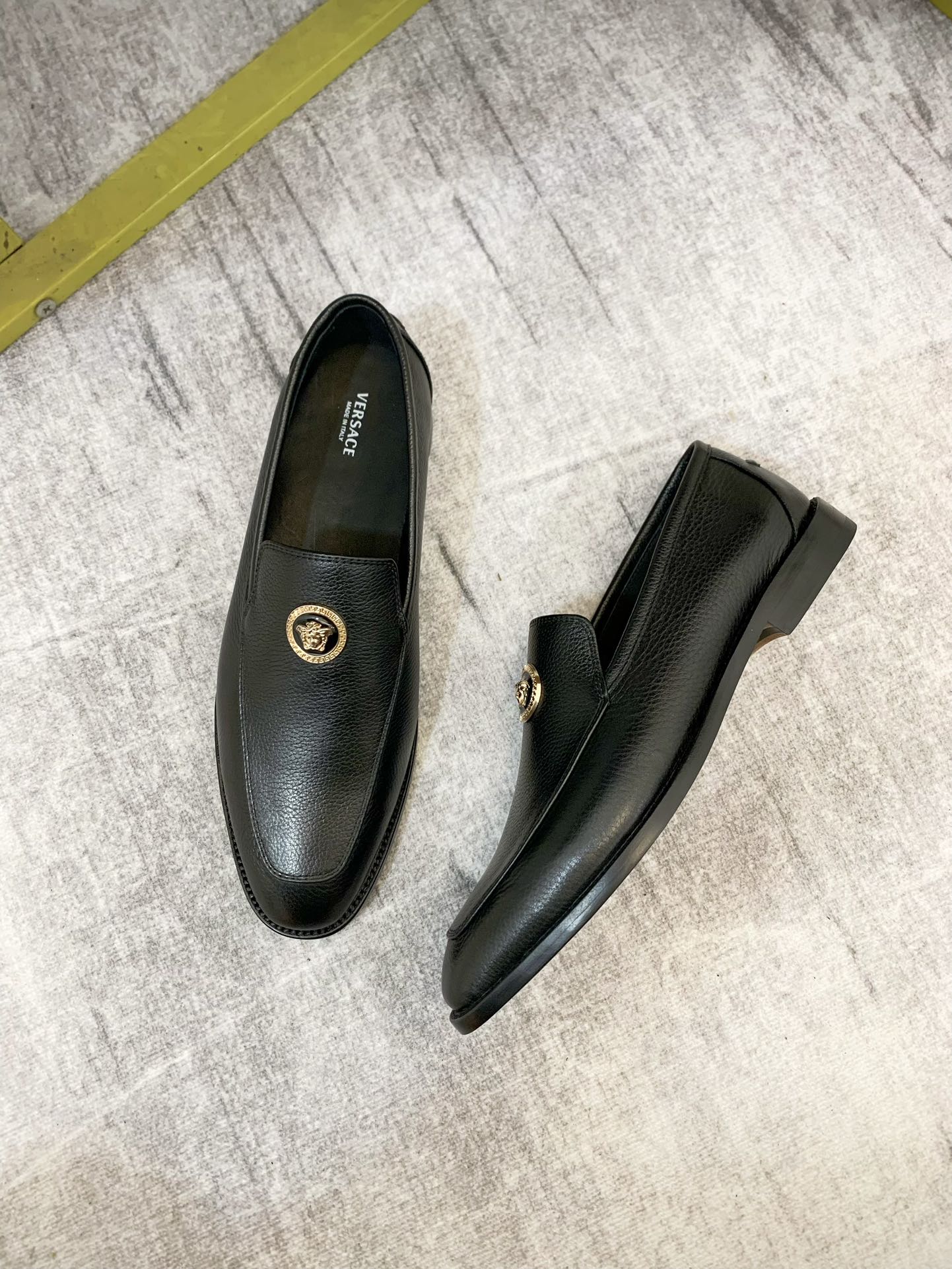 Elevate your style with Versace's Classic Men's Business Leather Shoes, available in sizes 39 to 44 with customization options at sizes 38, 45, and 46. Crafted from premium first-layer cowhide, these shoes feature a water-dyed finish for exceptional durability and elegance. The upper is adorned with iconic Versace hardware, while the genuine leather outsole ensures longevity and comfort. Experience professional craftsmanship and attention to detail, reflecting the refined taste of a distinguished gentleman. Upgrade your formal wardrobe with these timeless shoes that blend luxury and sophistication.