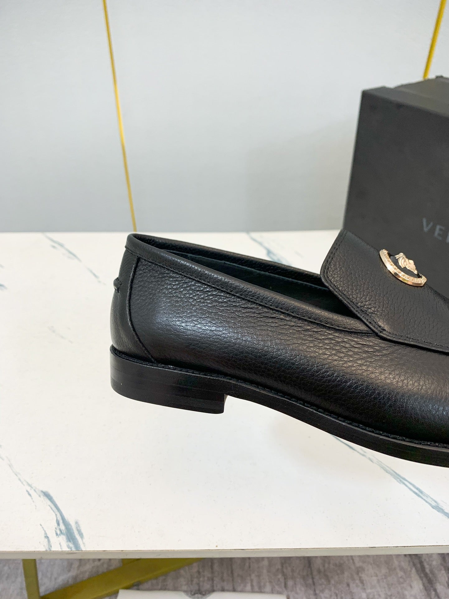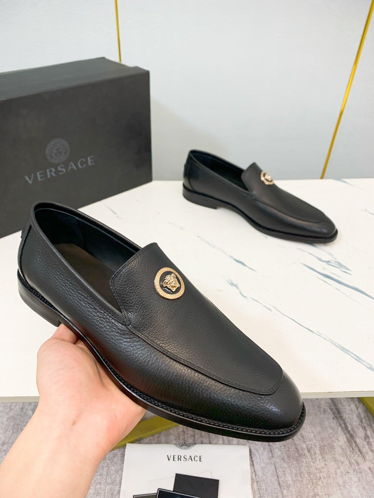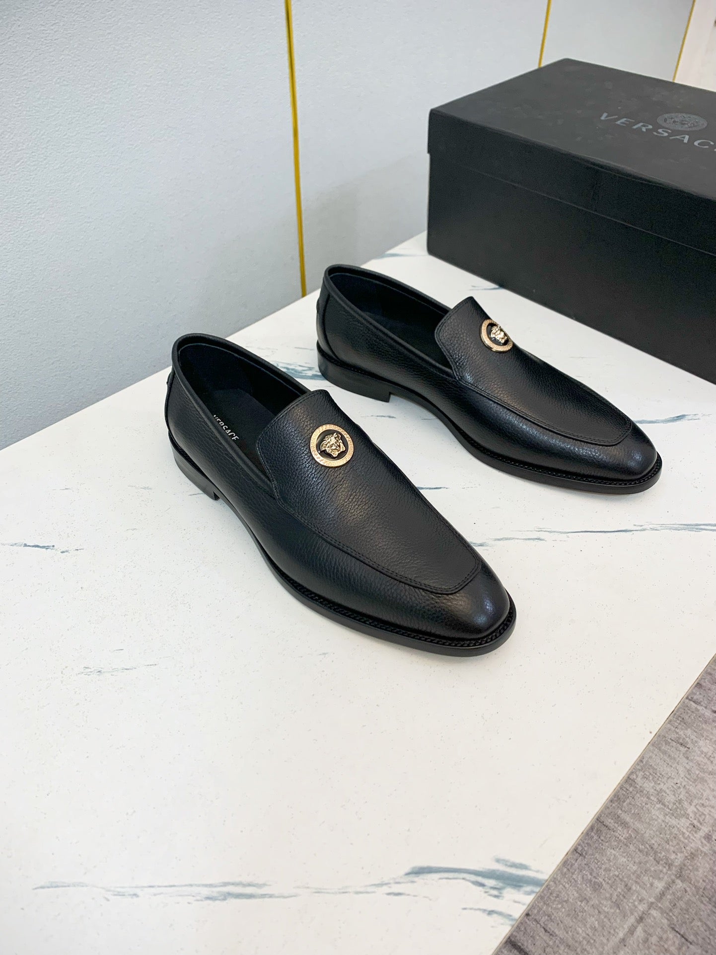 Elevate your style with Versace's Classic Men's Business Leather Shoes, available in sizes 39 to 44 with customization options at sizes 38, 45, and 46. Crafted from premium first-layer cowhide, these shoes feature a water-dyed finish for exceptional durability and elegance. The upper is adorned with iconic Versace hardware, while the genuine leather outsole ensures longevity and comfort. Experience professional craftsmanship and attention to detail, reflecting the refined taste of a distinguished gentleman. Upgrade your formal wardrobe with these timeless shoes that blend luxury and sophistication.