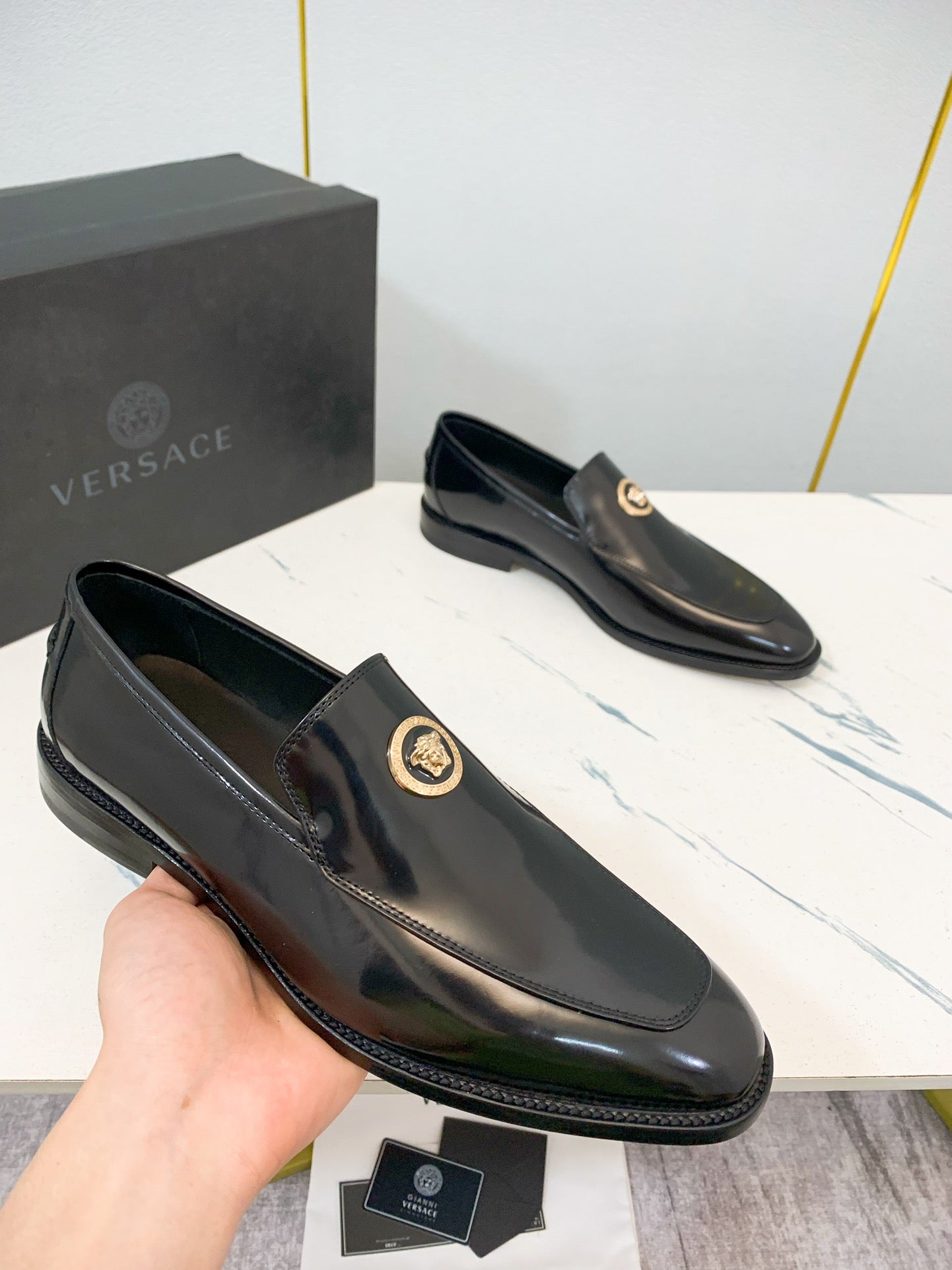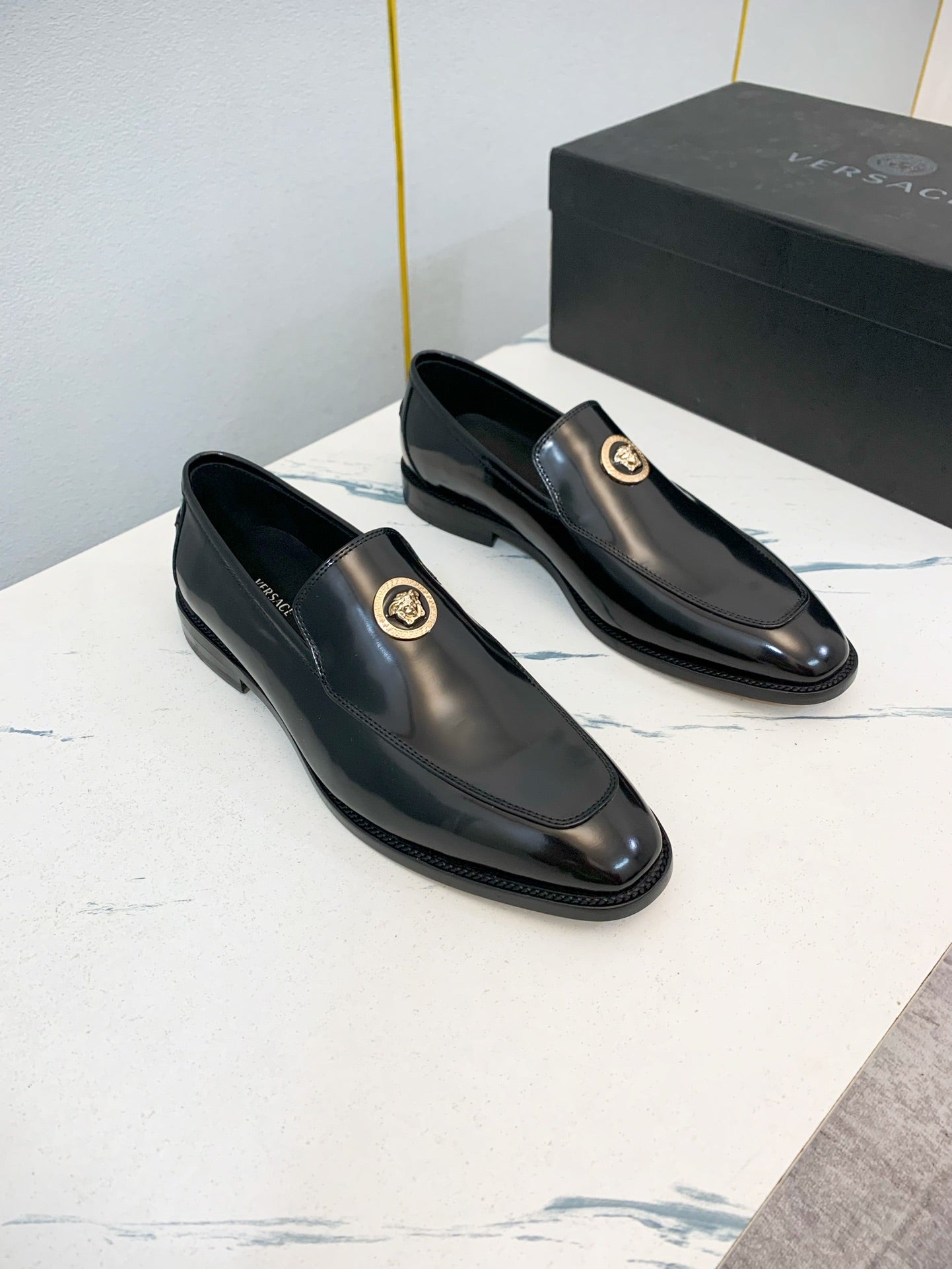 Versace Men's Classic Leather Business Shoes - Customizable Sizes 39-44