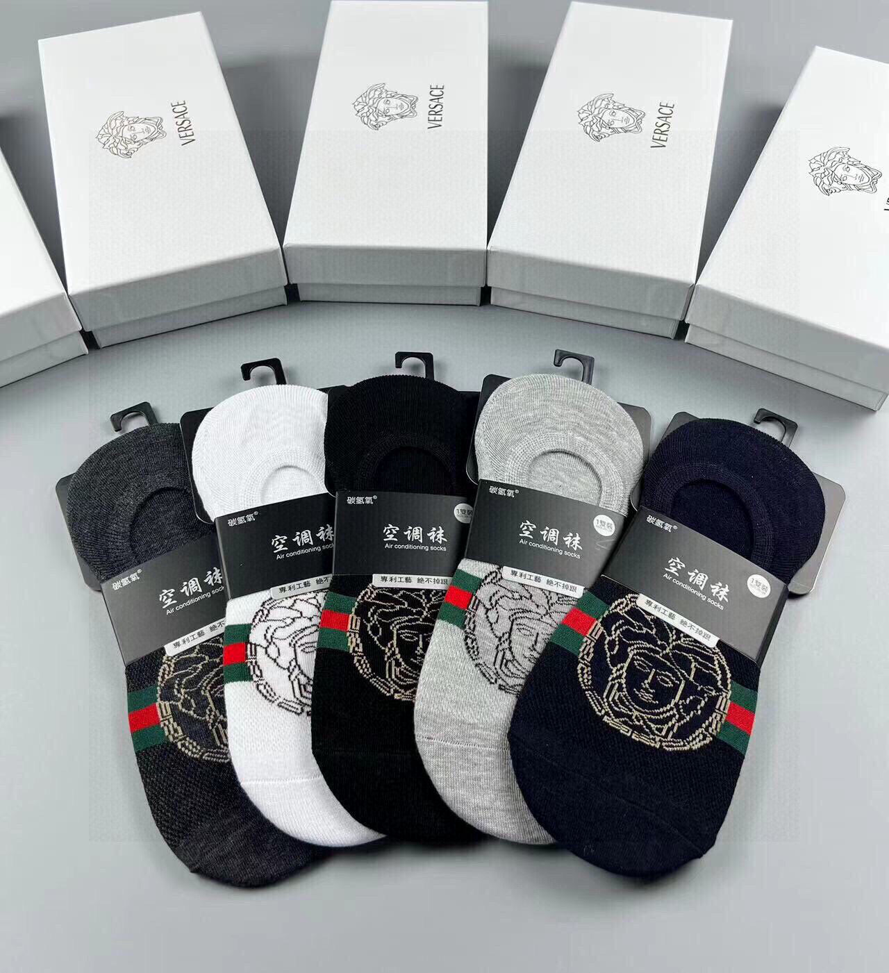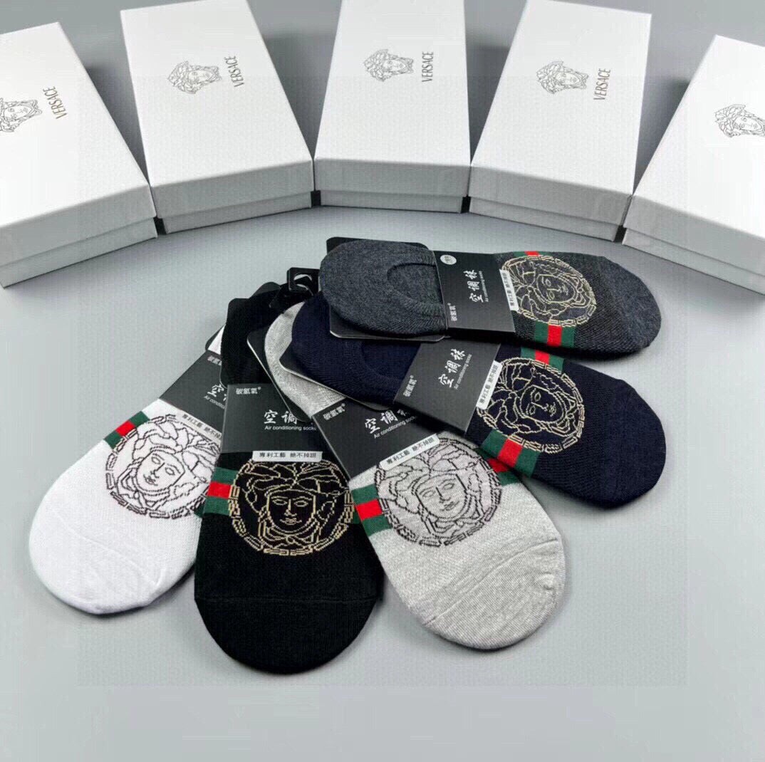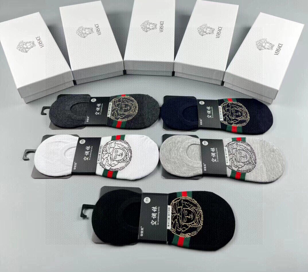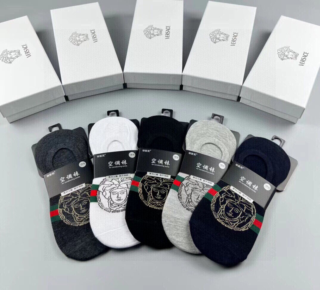 Versace Men's Invisible Boat Socks - 5 Pairs in Classic Colors