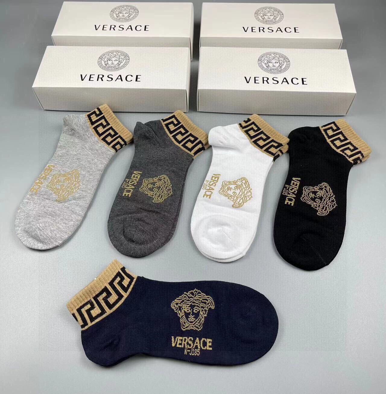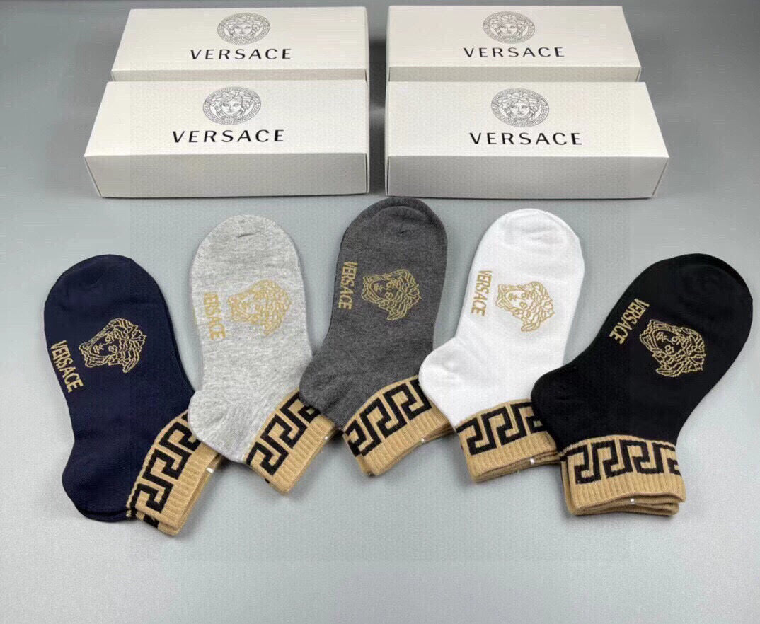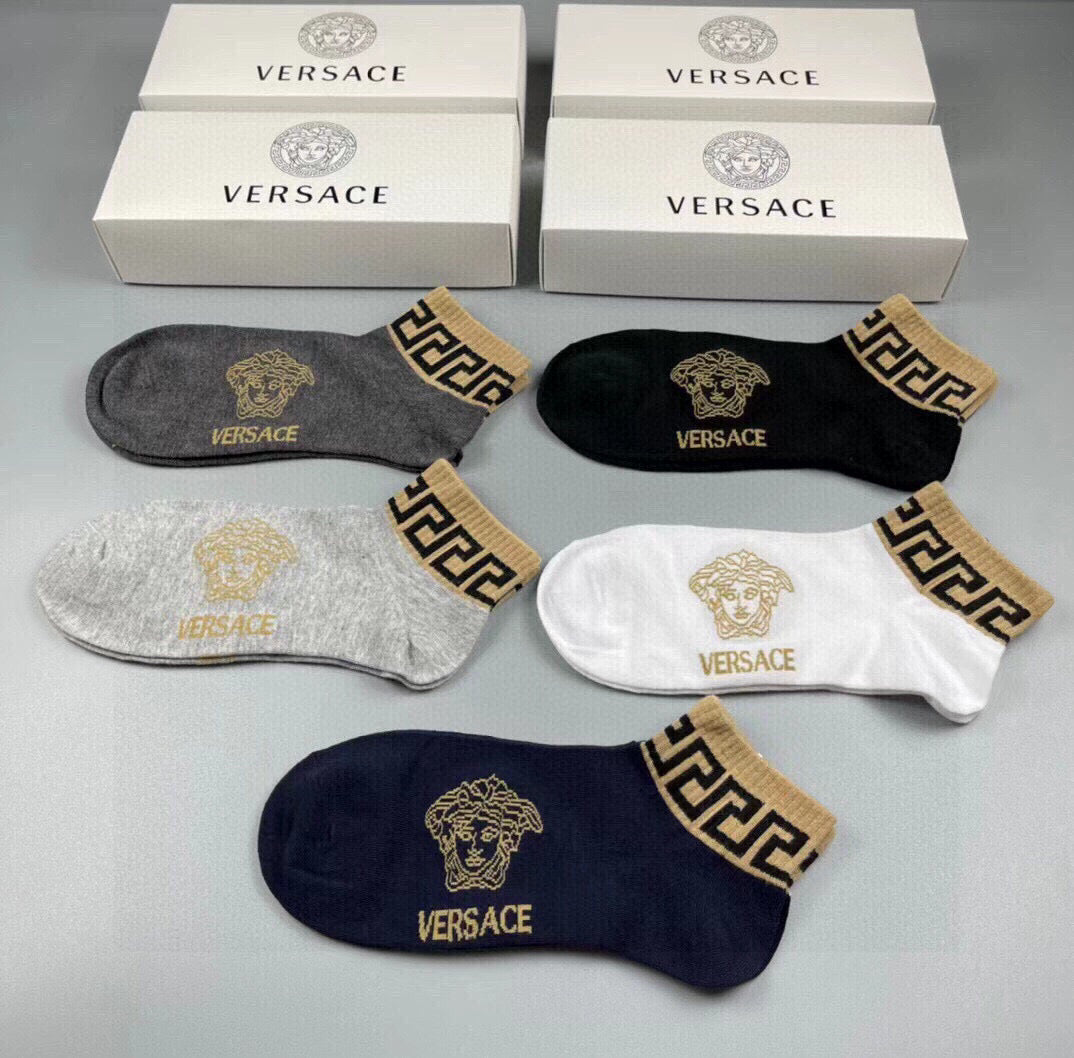 Versace Men's Luxury Cotton Socks - 5 Pairs Gift Box