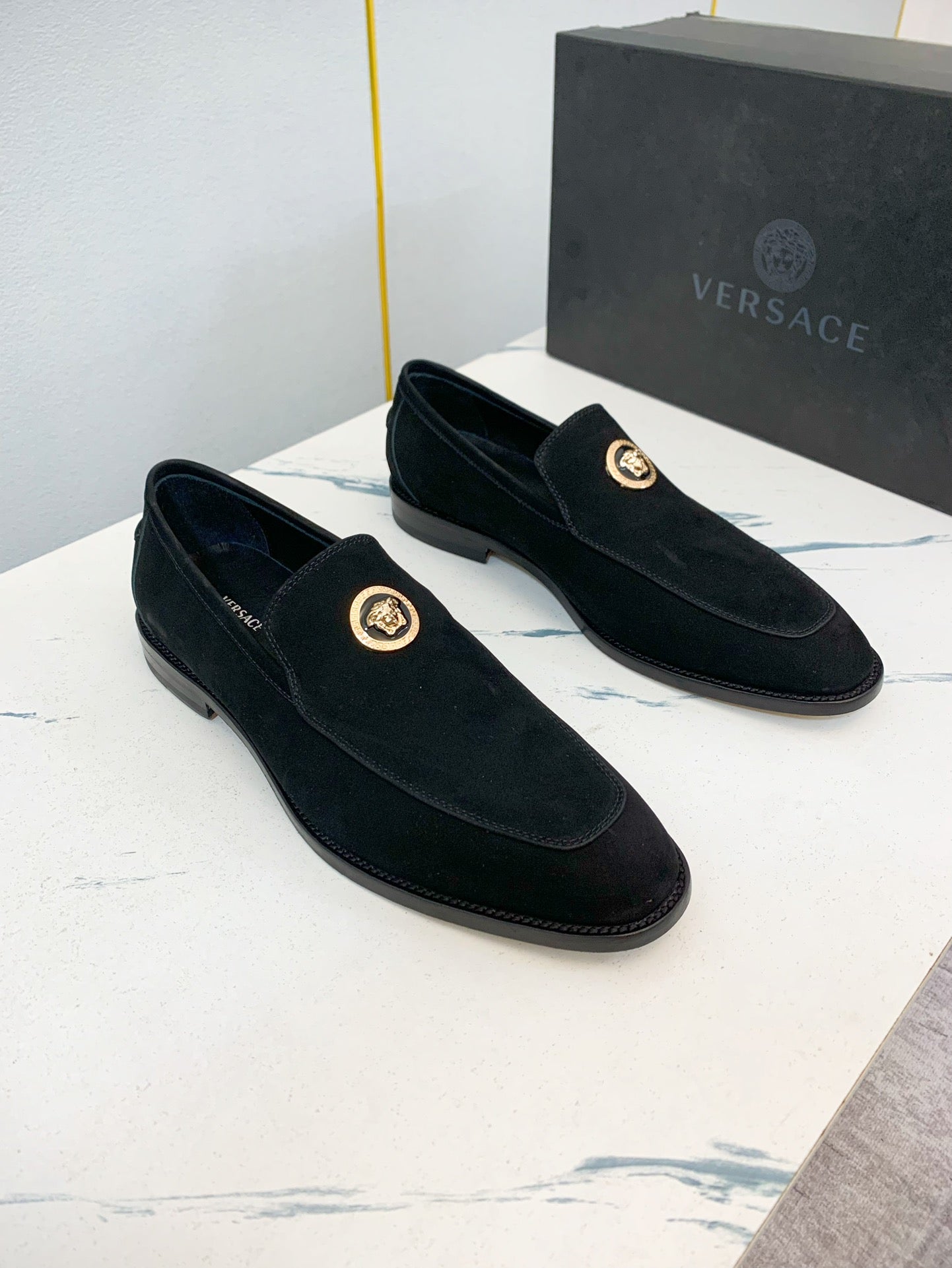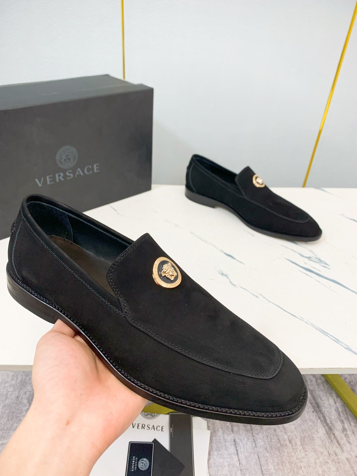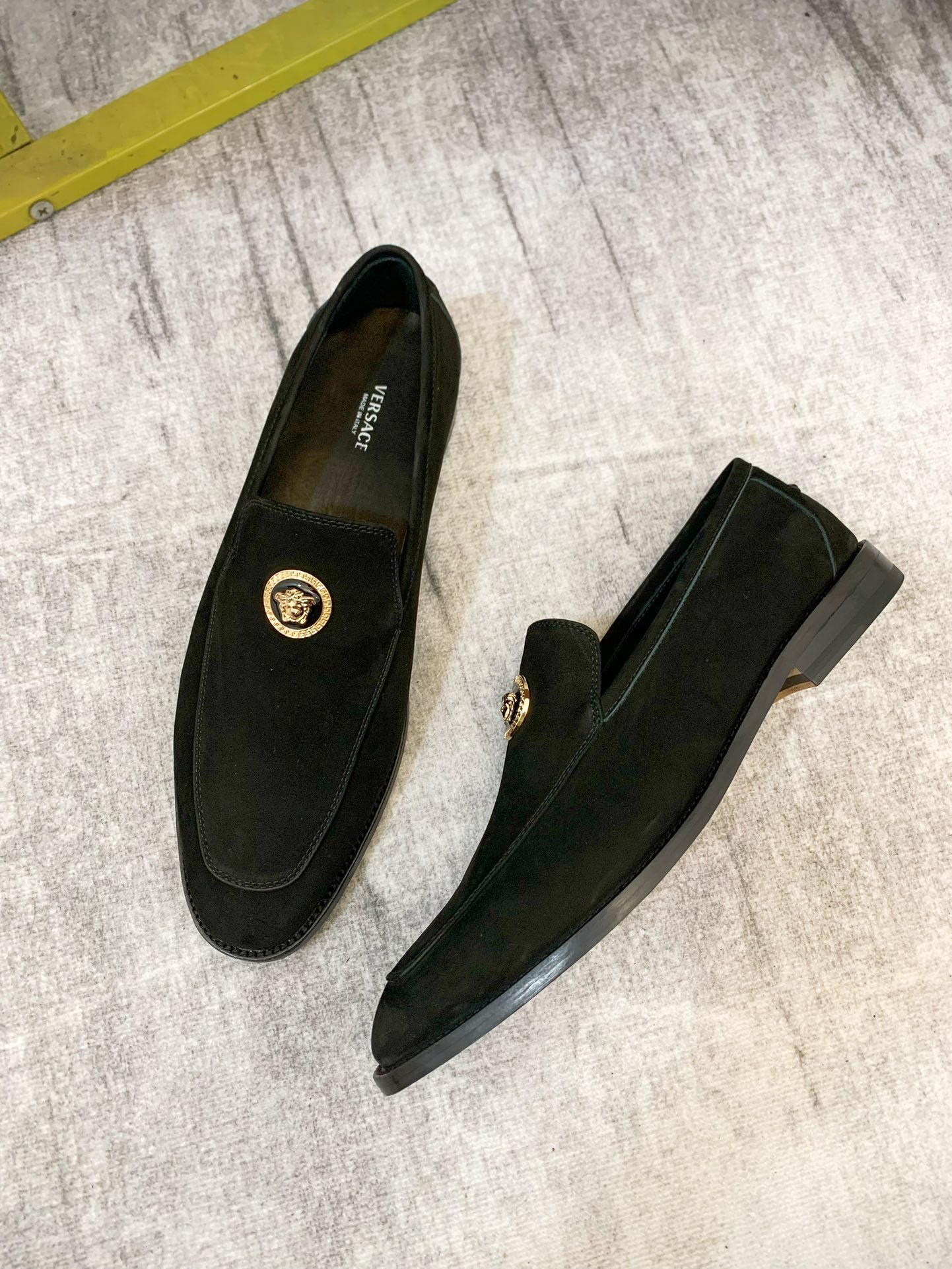 Elevate your professional wardrobe with Versace's luxury men's business shoes, available in sizes 39-44 (customizable for 38, 45, and 46). Crafted from high-quality, water-dyed first-layer cowhide, these classic shoes feature a sophisticated leather outsole and iconic hardware accents, embodying elegance and refinement. Each pair is meticulously crafted with a commitment to detail, ensuring a distinguished look for the modern gentleman. Experience the blend of style and comfort with Versace’s renowned craftsmanship—perfect for any business occasion.