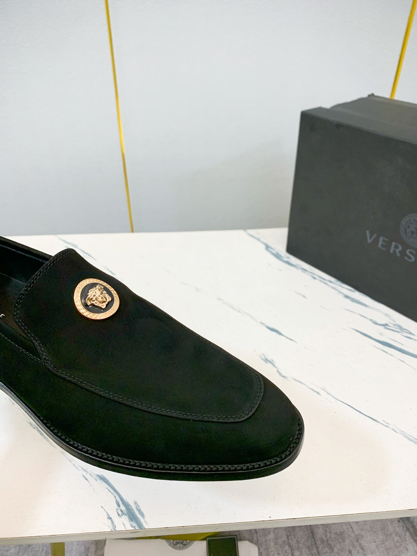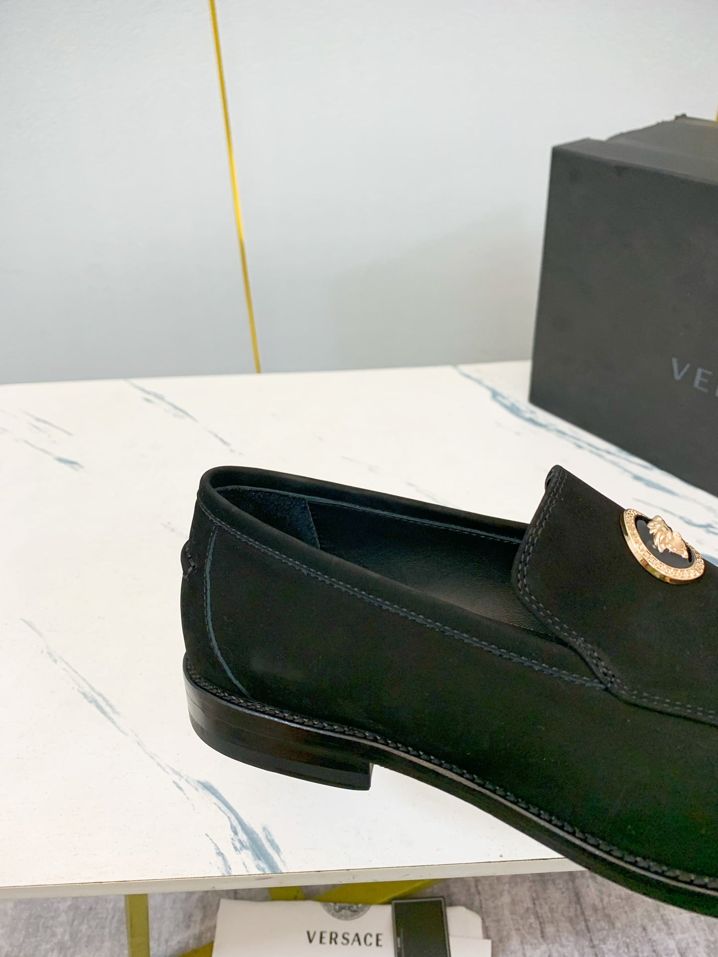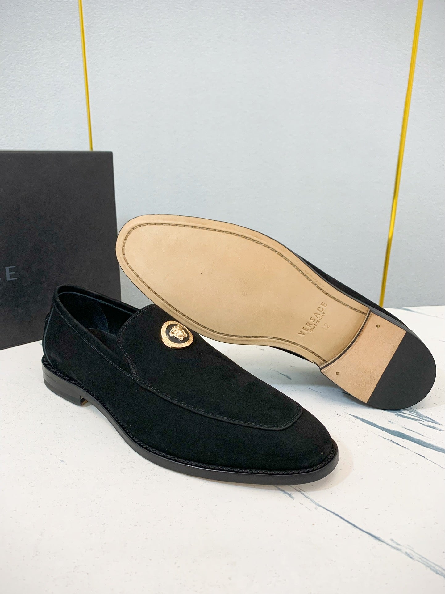 Elevate your professional wardrobe with Versace's luxury men's business shoes, available in sizes 39-44 (customizable for 38, 45, and 46). Crafted from high-quality, water-dyed first-layer cowhide, these classic shoes feature a sophisticated leather outsole and iconic hardware accents, embodying elegance and refinement. Each pair is meticulously crafted with a commitment to detail, ensuring a distinguished look for the modern gentleman. Experience the blend of style and comfort with Versace’s renowned craftsmanship—perfect for any business occasion.