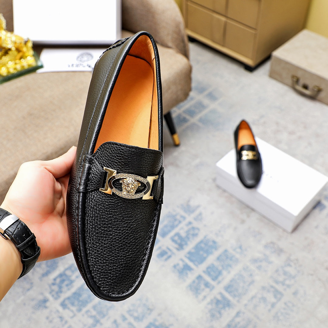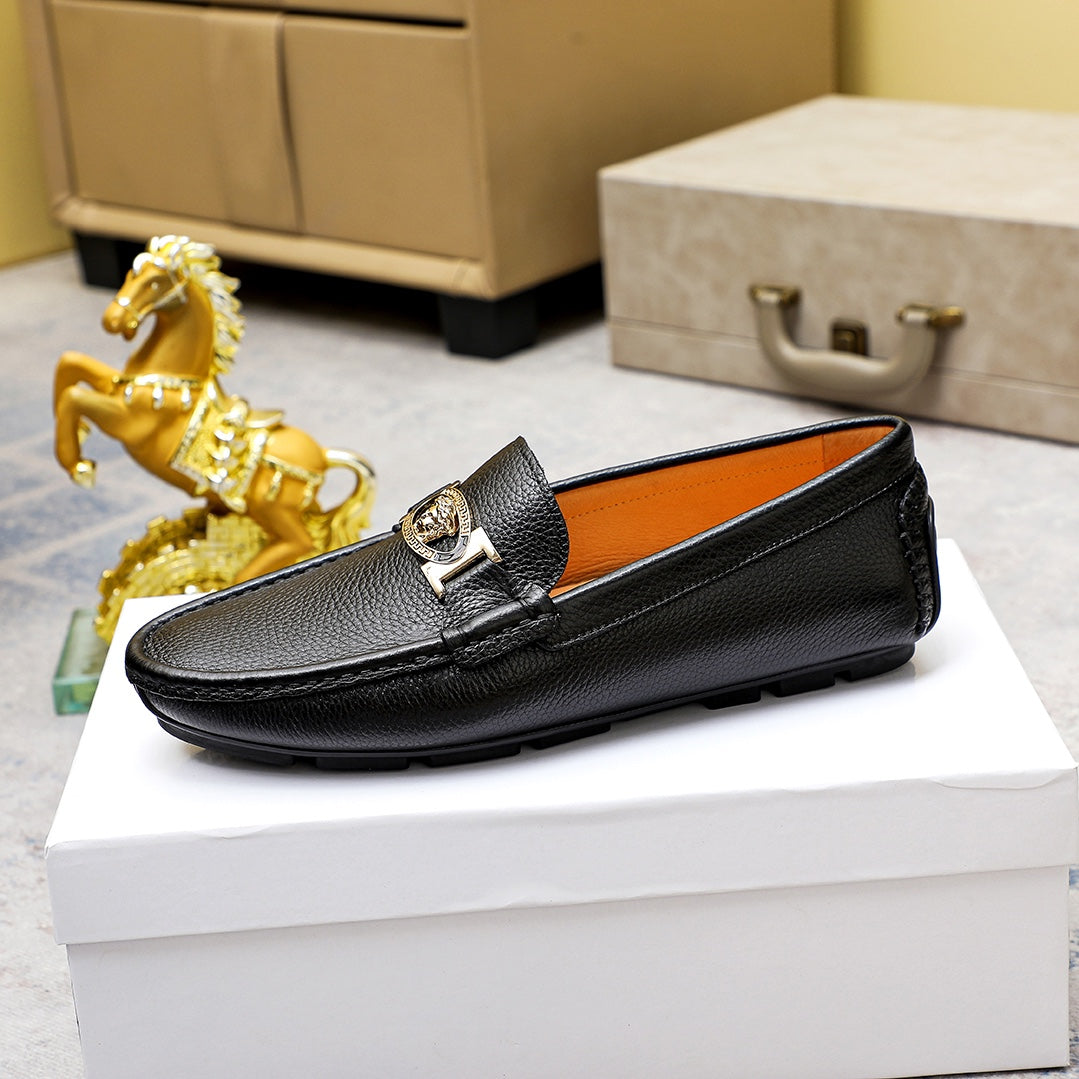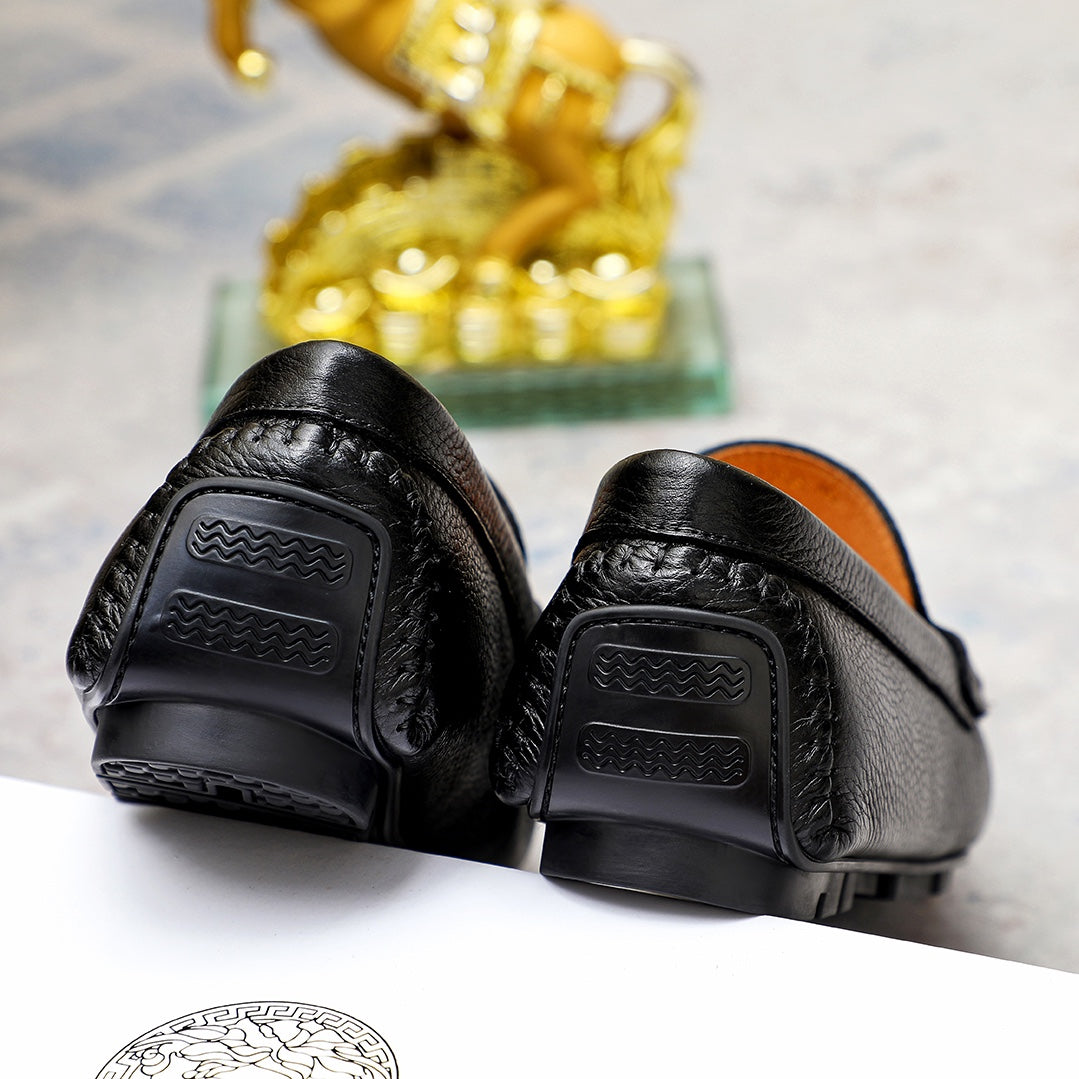 Elevate your footwear collection with the Versace Men’s Premium Beanie Shoes. Crafted from first-layer cowhide and featuring a luxurious leather lining, these shoes are designed to provide both comfort and style. The wear-resistant rubber outsole ensures durability, while the expertly shaped design offers a three-dimensional feel that's both fashionable and sophisticated. Available in five stylish colors, these shoes are versatile enough for any occasion. Sizes range from 38 to 45. Experience the unmatched quality of Versace today!