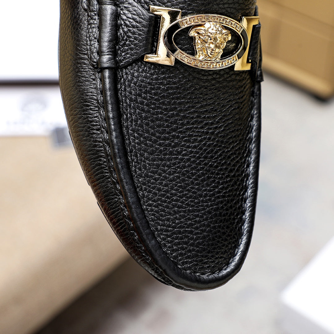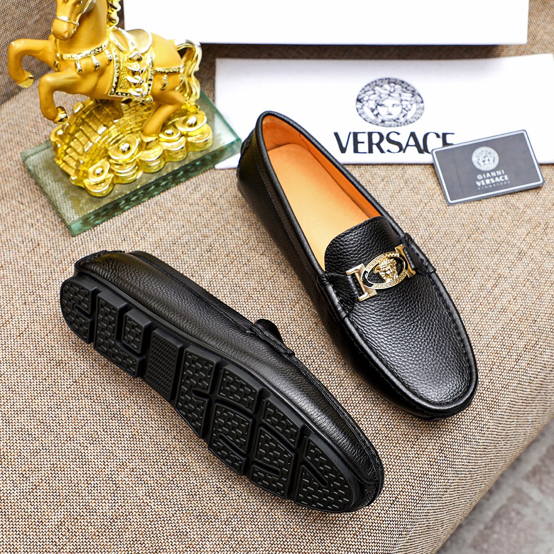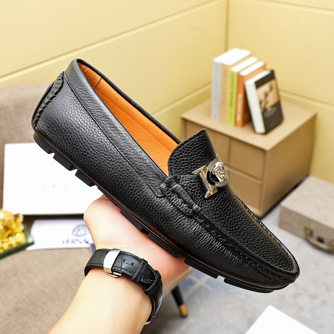 Elevate your footwear collection with the Versace Men’s Premium Beanie Shoes. Crafted from first-layer cowhide and featuring a luxurious leather lining, these shoes are designed to provide both comfort and style. The wear-resistant rubber outsole ensures durability, while the expertly shaped design offers a three-dimensional feel that's both fashionable and sophisticated. Available in five stylish colors, these shoes are versatile enough for any occasion. Sizes range from 38 to 45. Experience the unmatched quality of Versace today!