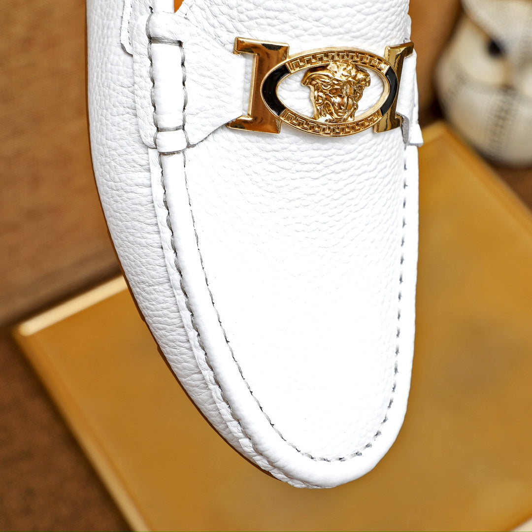 Elevate your style with the Versace Men's Beanie Shoes, a perfect blend of luxury and comfort. Crafted from first-layer cowhide and featuring a plush leather lining, these shoes offer an exceptional fit and quality. The rubber outsole is designed for durability and wear resistance, ensuring long-lasting wear while providing a three-dimensional silhouette. Available in five sophisticated colors, these versatile shoes are suitable for both casual and upscale occasions. Sizes range from 38 to 44, with customized options for sizes 45 and 46. Experience the elegance and chic style of Versace today.