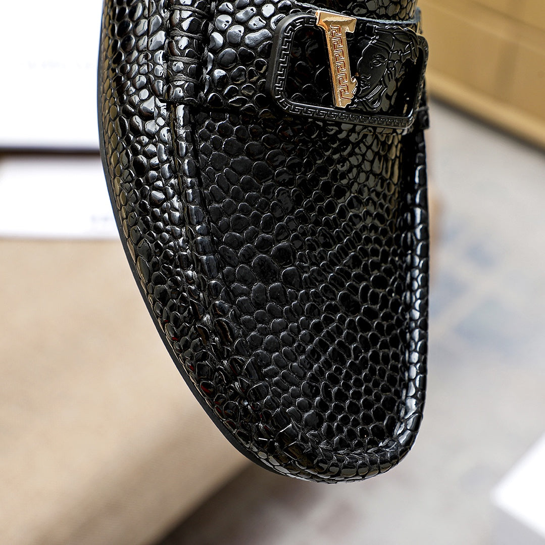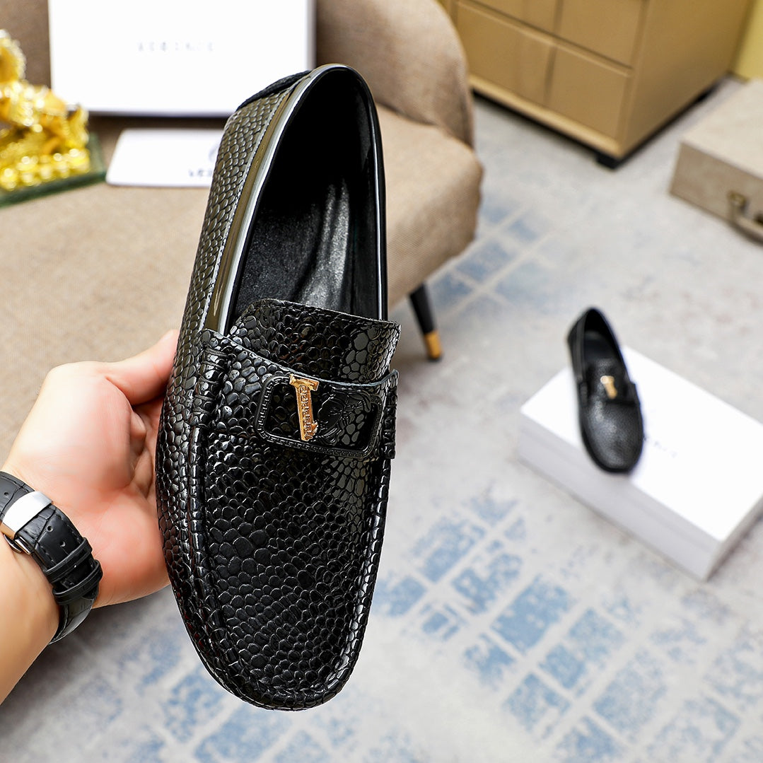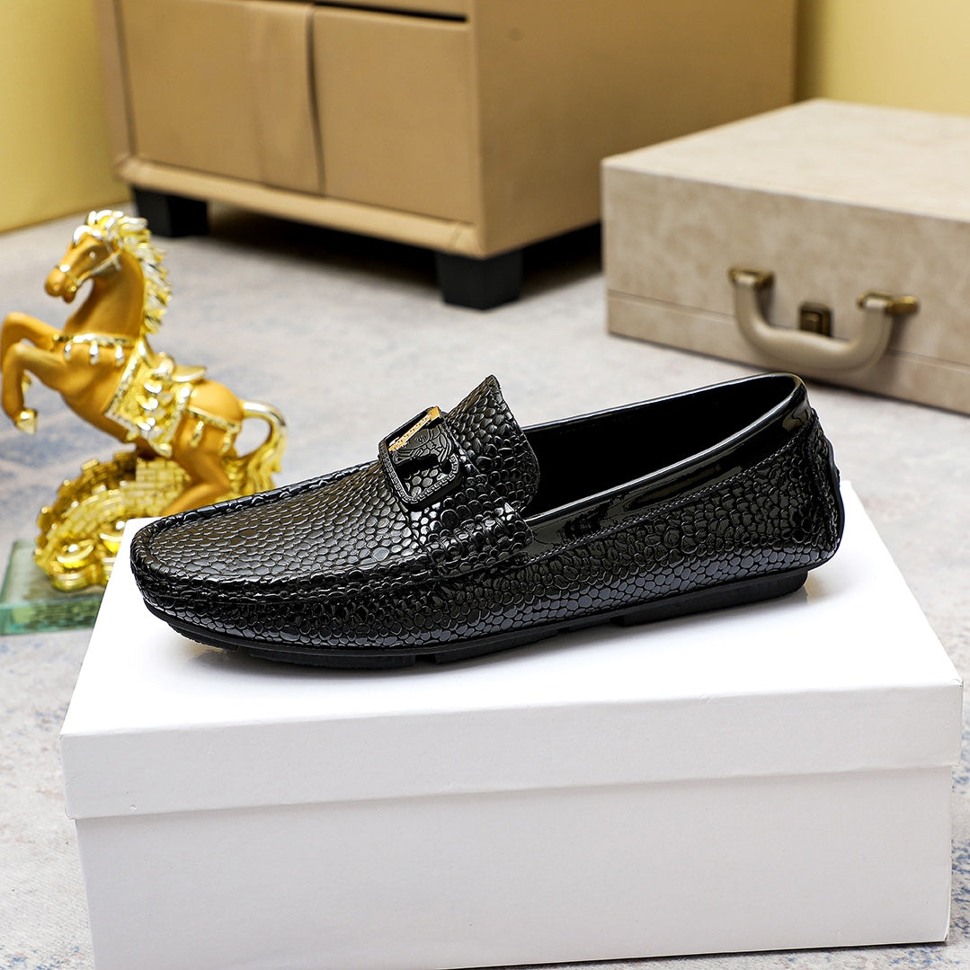 Introducing the Versace Men's Premium Beanie Shoes, crafted with original quality materials for a sophisticated look. Featuring luxurious first-layer cowhide and soft leather lining, these shoes offer exceptional comfort and durability. The expertly designed rubber outsole provides outstanding wear resistance, ensuring longevity with every step.