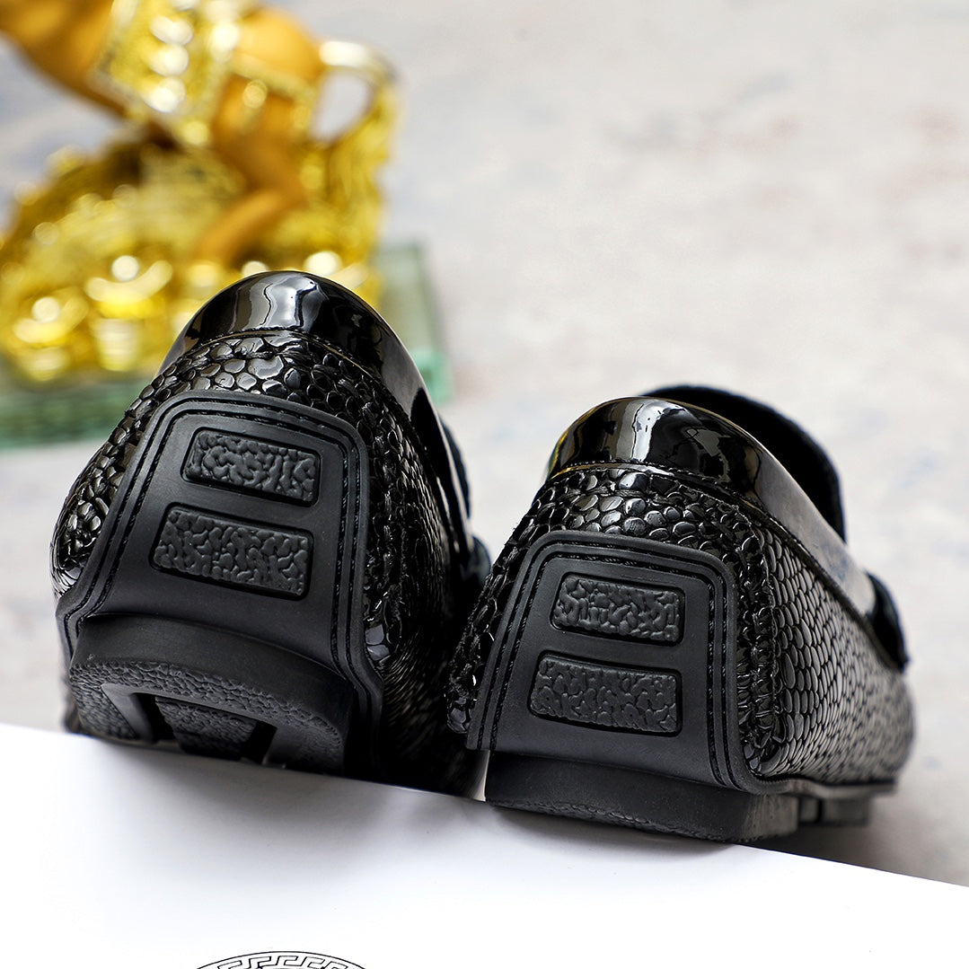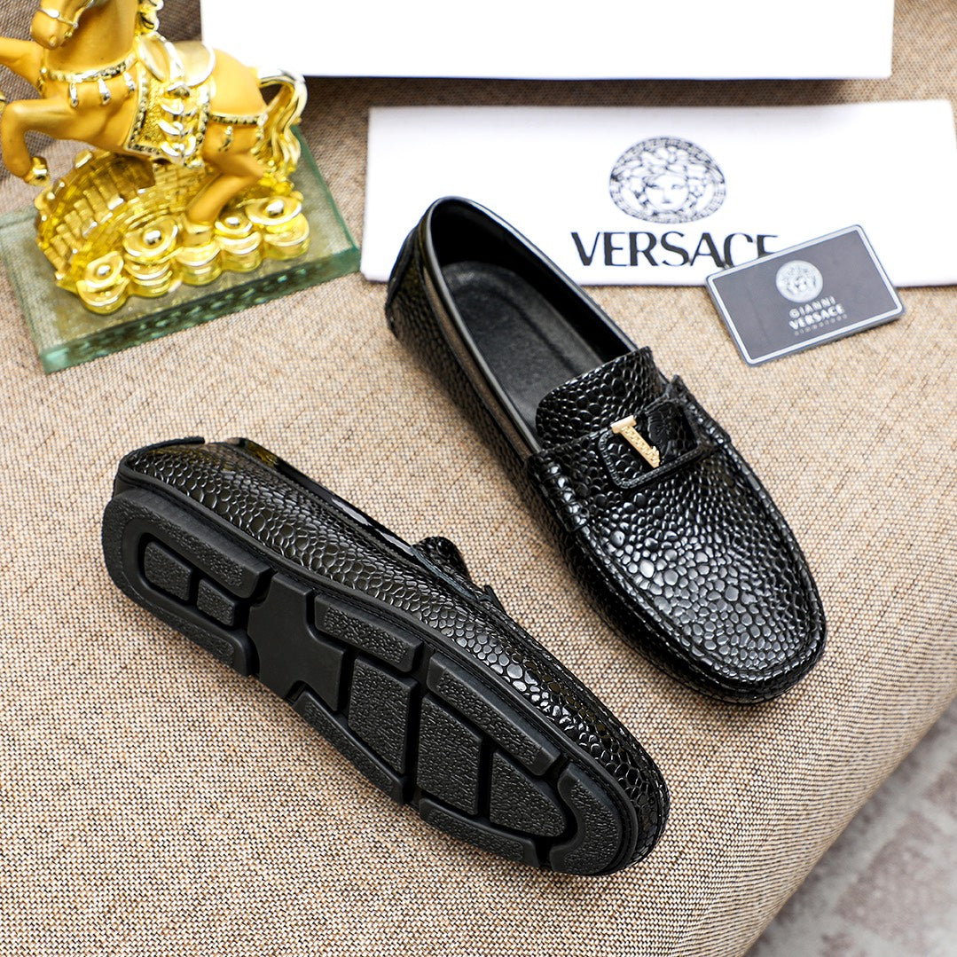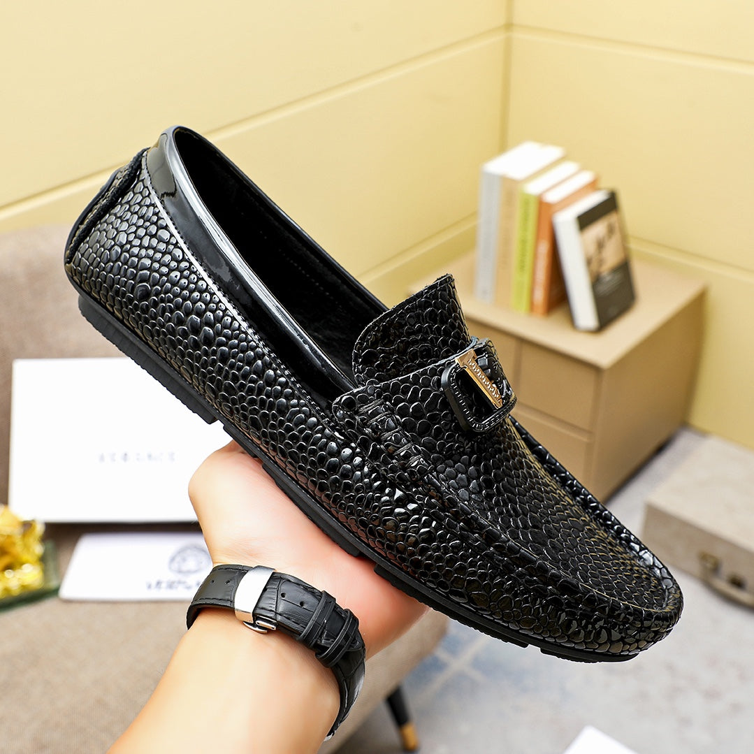 Introducing the Versace Men's Premium Beanie Shoes, crafted with original quality materials for a sophisticated look. Featuring luxurious first-layer cowhide and soft leather lining, these shoes offer exceptional comfort and durability. The expertly designed rubber outsole provides outstanding wear resistance, ensuring longevity with every step.