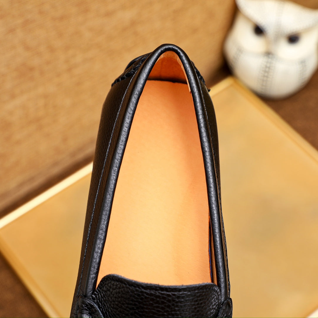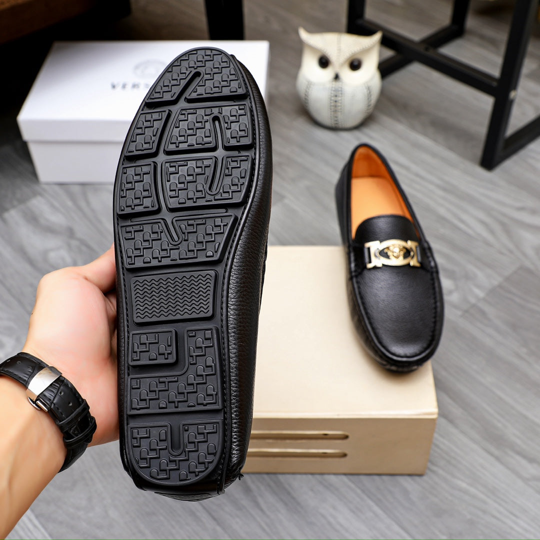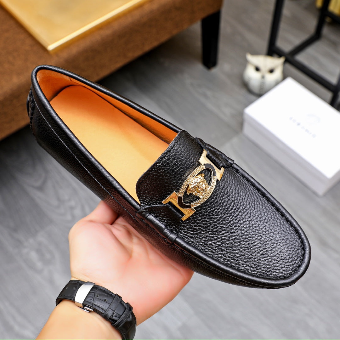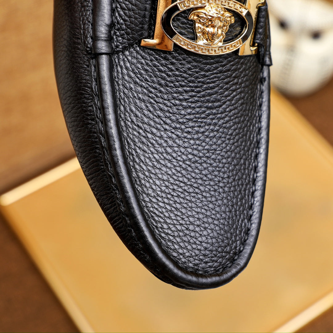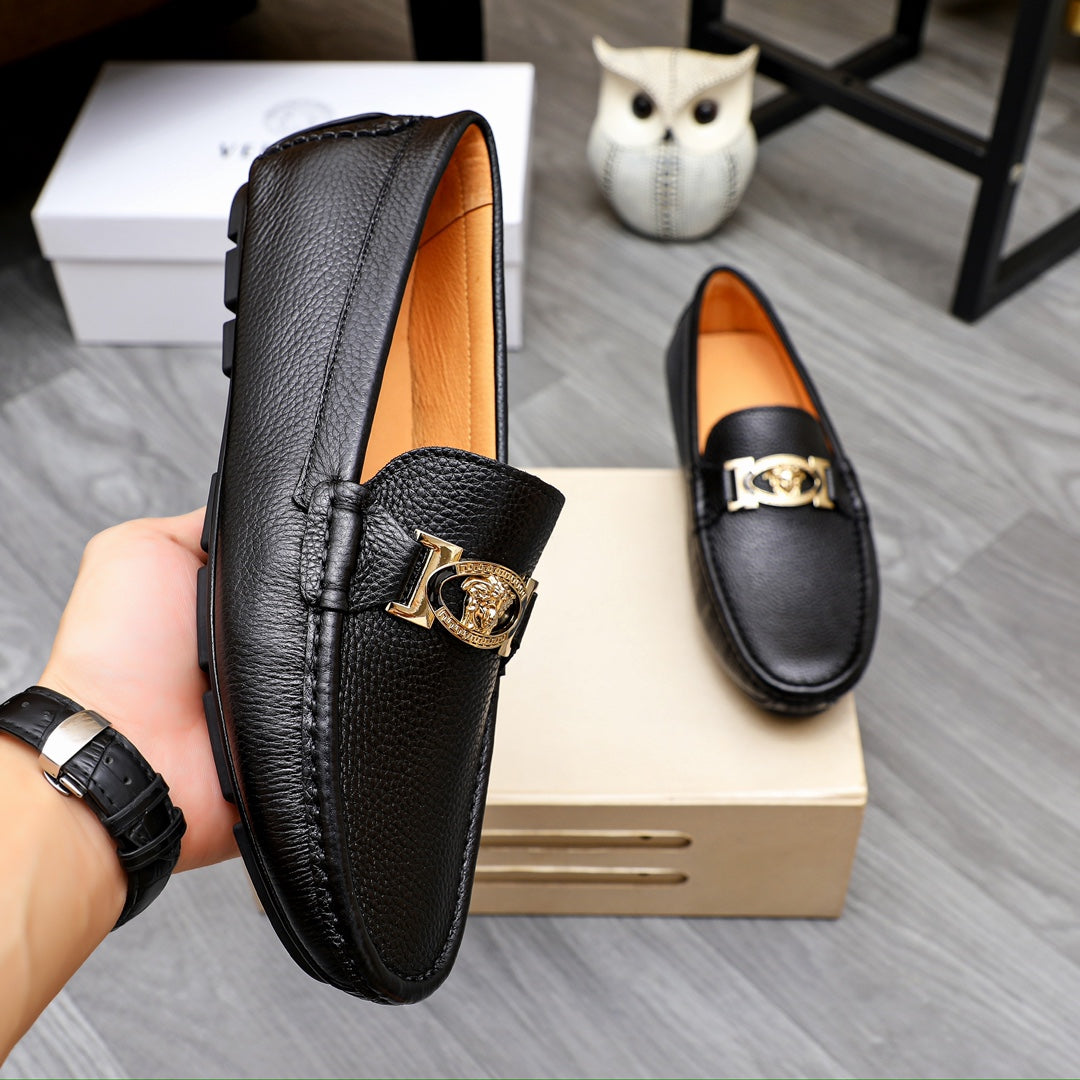 Elevate your footwear collection with the Versace Men's Premium Beanie Shoes. Crafted from first-layer cowhide and lined with soft leather, these shoes are designed for both comfort and style. The rubber outsole ensures durability and wear-resistance, while the impeccable shape offers a three-dimensional aesthetic.
