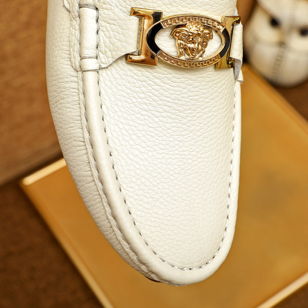 Elevate your footwear collection with the Versace Men's Beanie Shoes, now available in an array of five stunning colors. Crafted from first-layer cowhide and featuring a comfortable leather lining, these shoes combine luxury with practicality. The high-quality rubber outsole ensures durability and wear-resistance, while the meticulously designed shape offers a sleek, three-dimensional appearance.