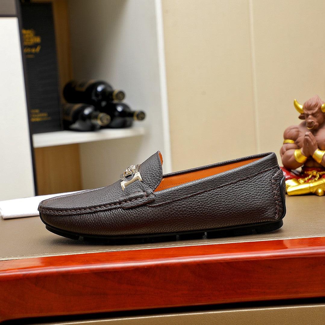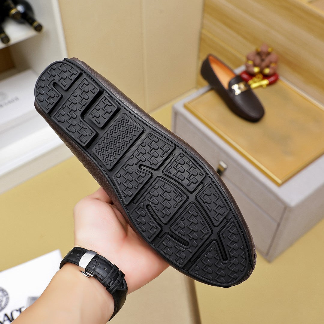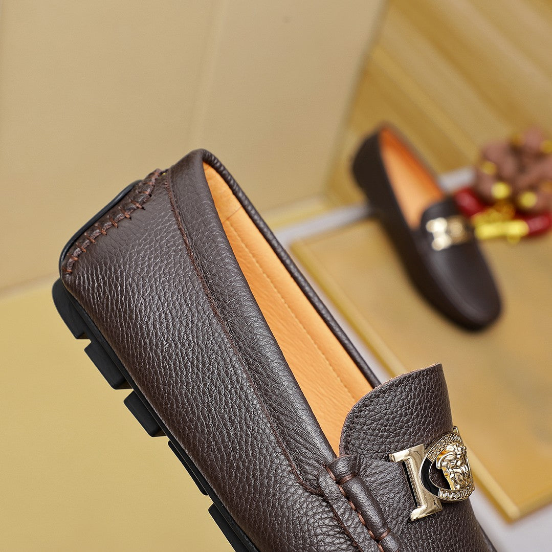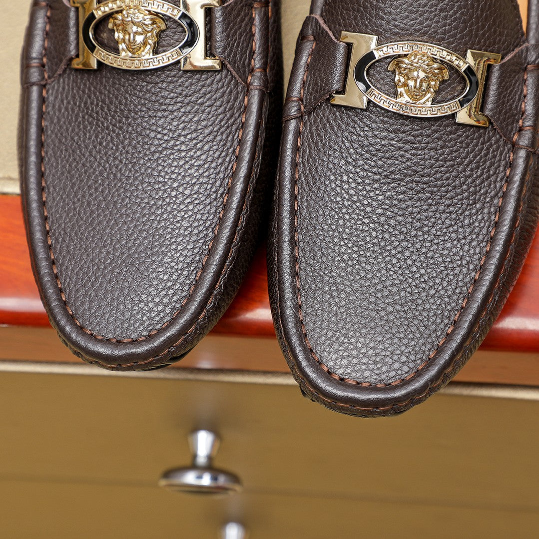 Discover the ultimate in luxury with the Versace Men's Beanie Shoes. Crafted from first-layer cowhide and featuring an exquisite leather lining, these shoes deliver unmatched quality and style. Designed for a perfect fit and shape, they include a durable rubber outsole for enhanced wear resistance. Available in five stunning colors, with sizes ranging from 38 to 45 (size 46 can be customized). Elevate your footwear collection with the sophistication of Versace.