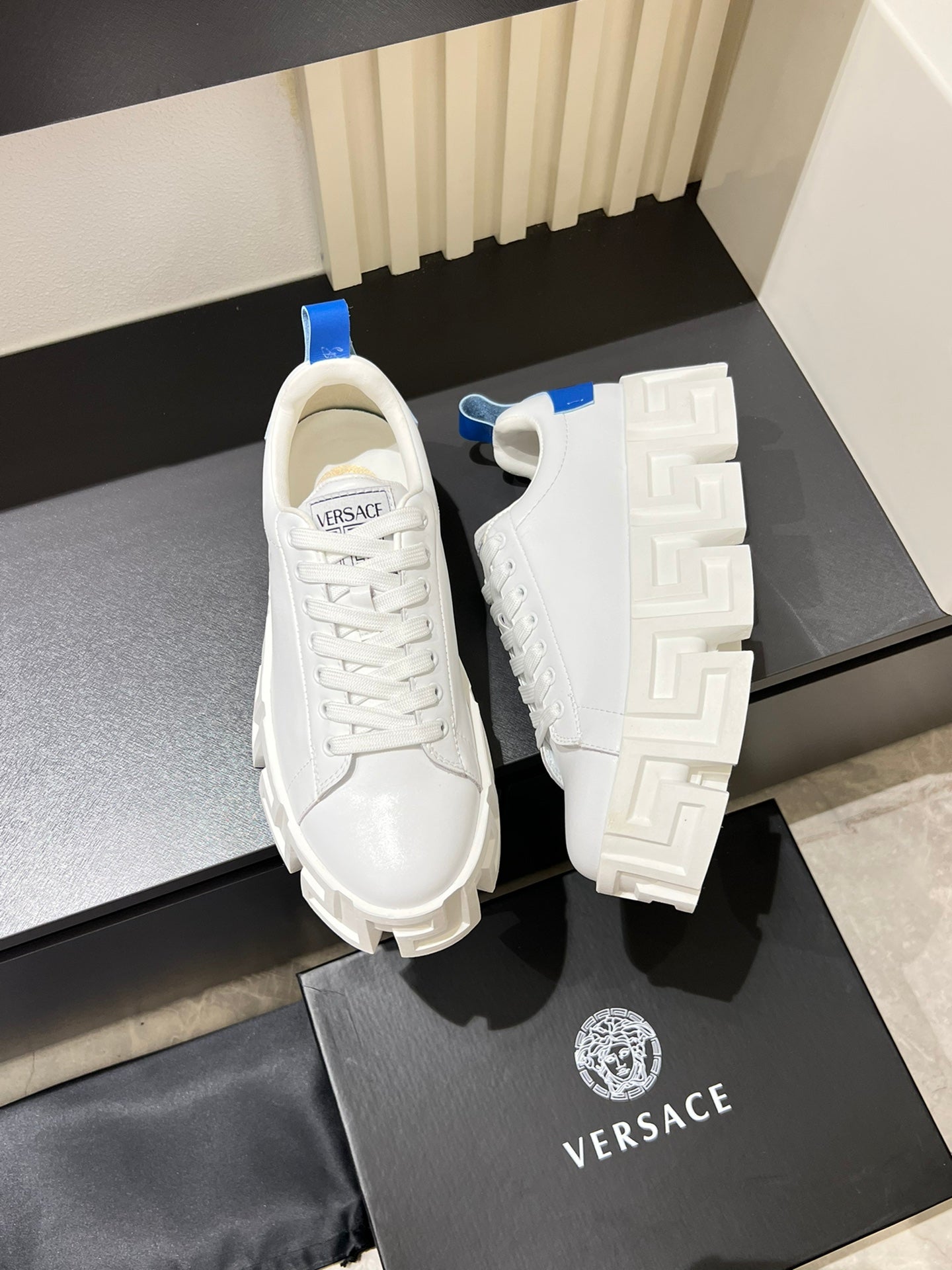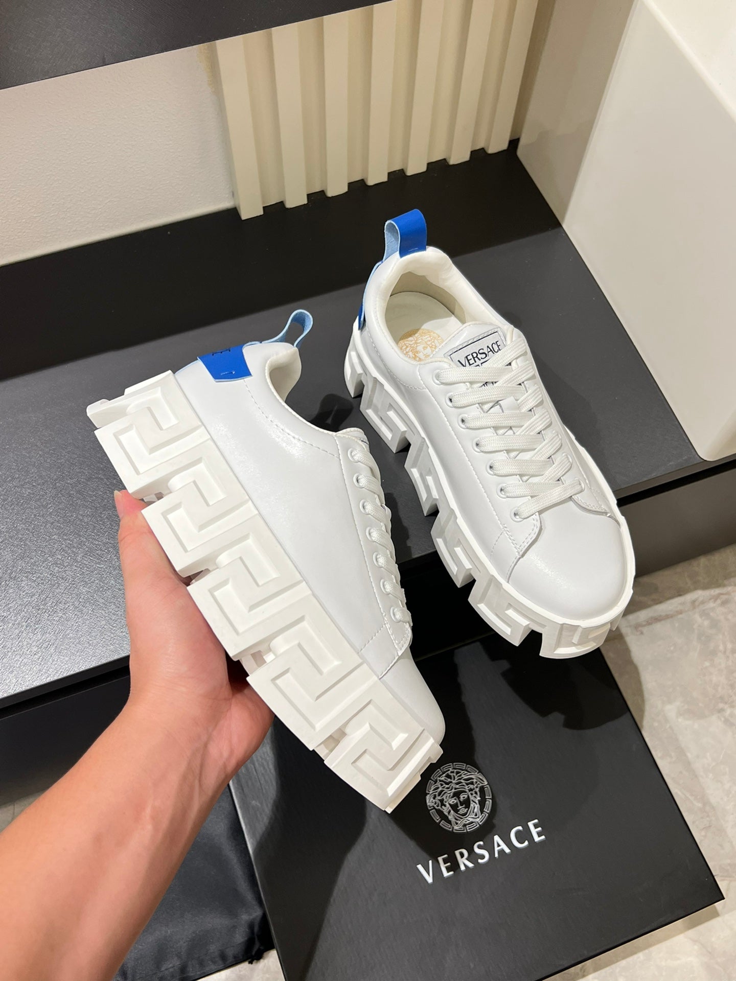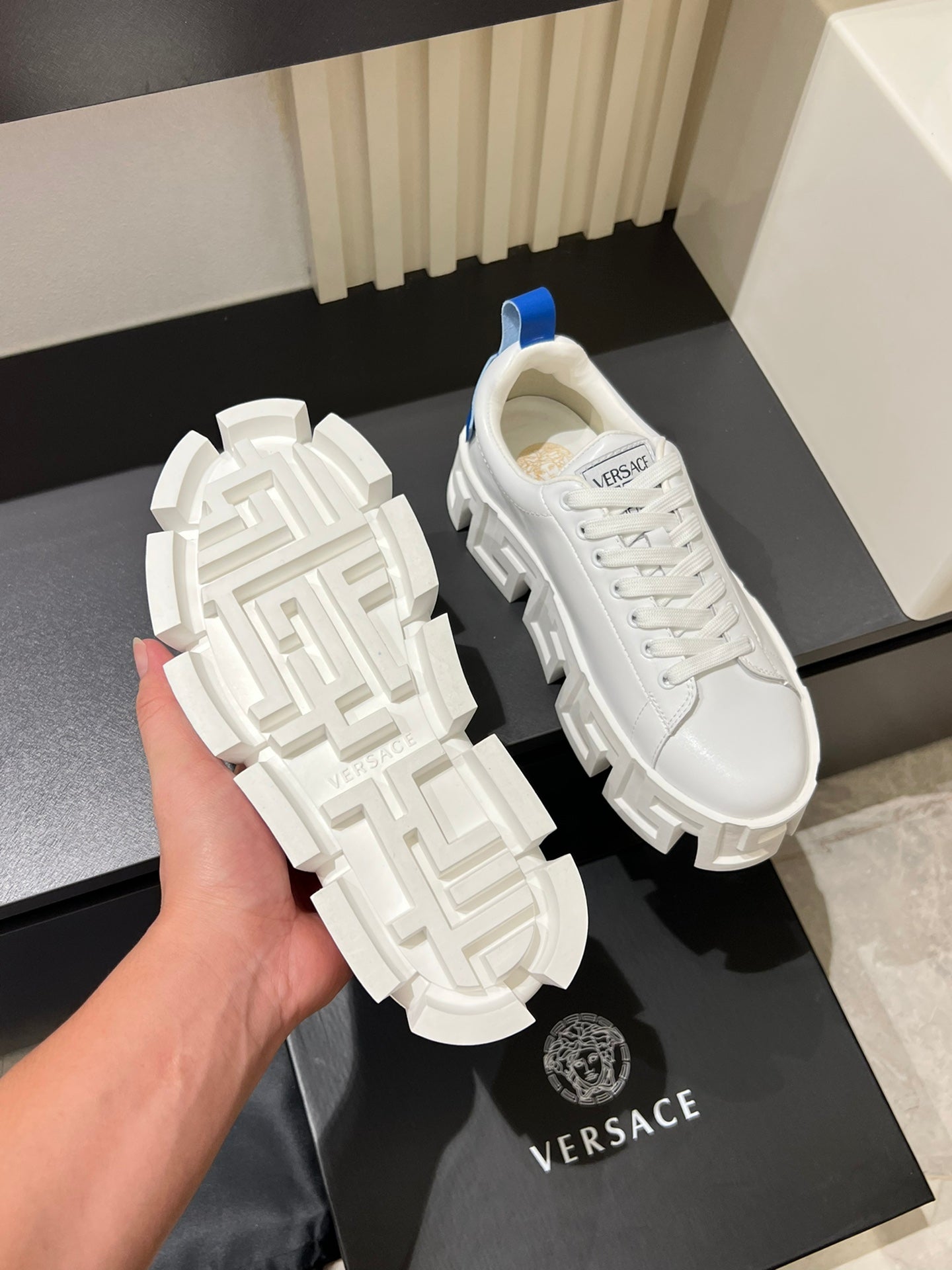 Available sizes: 38-44 (custom size 45 available upon request). Experience footwear redefined with the Versace Odissea.