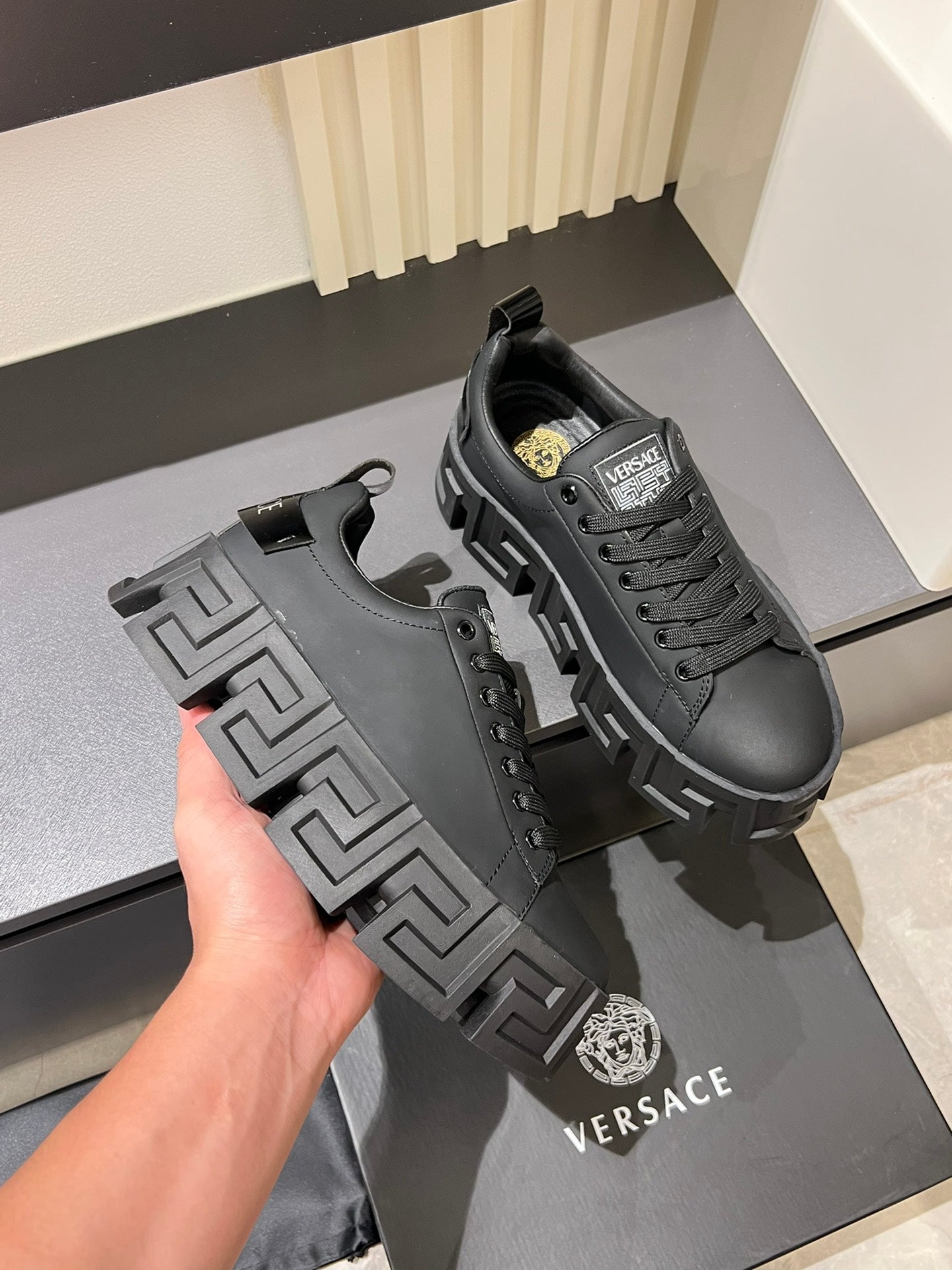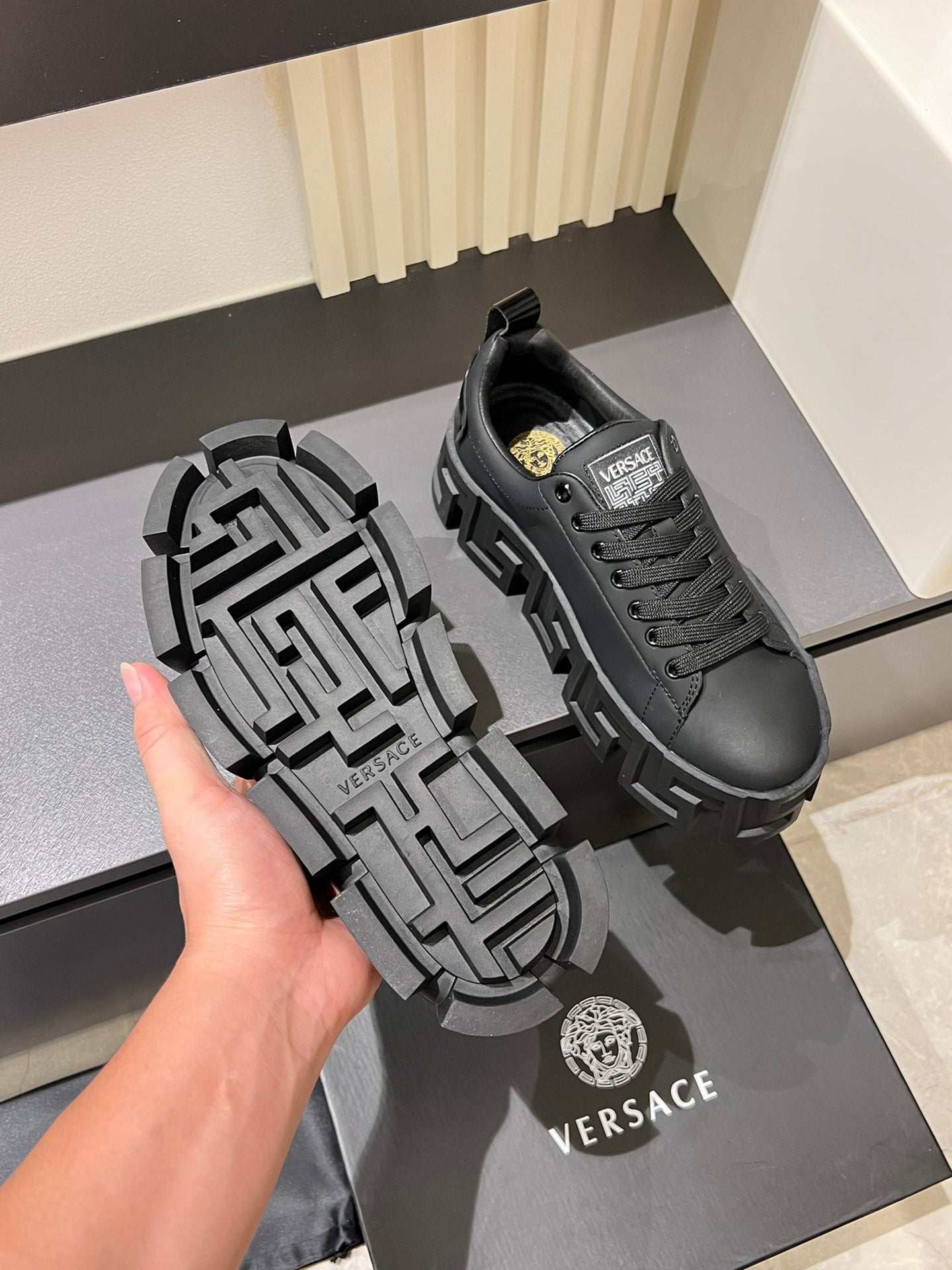 Distinguished by its luxurious relief patterns and sculptural silhouette, the Odissea shoes embody a perfect fusion of style and innovation. The dynamic, smooth lines enhance their sporty aesthetic, making them a must-have for the modern fashion-forward individual. Available in sizes 38-44, with custom sizing for 45, these shoes redefine what it means to be fashionable and functional. Elevate your sneaker game with the Versace Odissea.