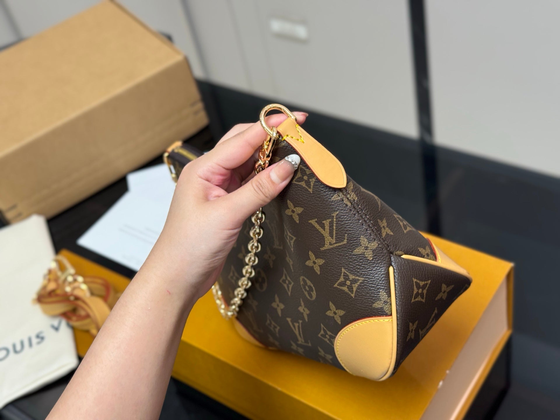 Discover the timeless elegance of the Vintage Louis Vuitton Croissant Shoulder Bag, featuring a unique yellow leather that's sure to stand out. This pre-owned piece measures 29*16 cm and comes with original hardware, ensuring authenticity and style. The bag includes a convenient shoulder strap and chain, allowing for versatile wear options, whether on one shoulder or cross-body. Elevate your accessory collection with this classic and chic shoulder bag, perfect for any occasion.