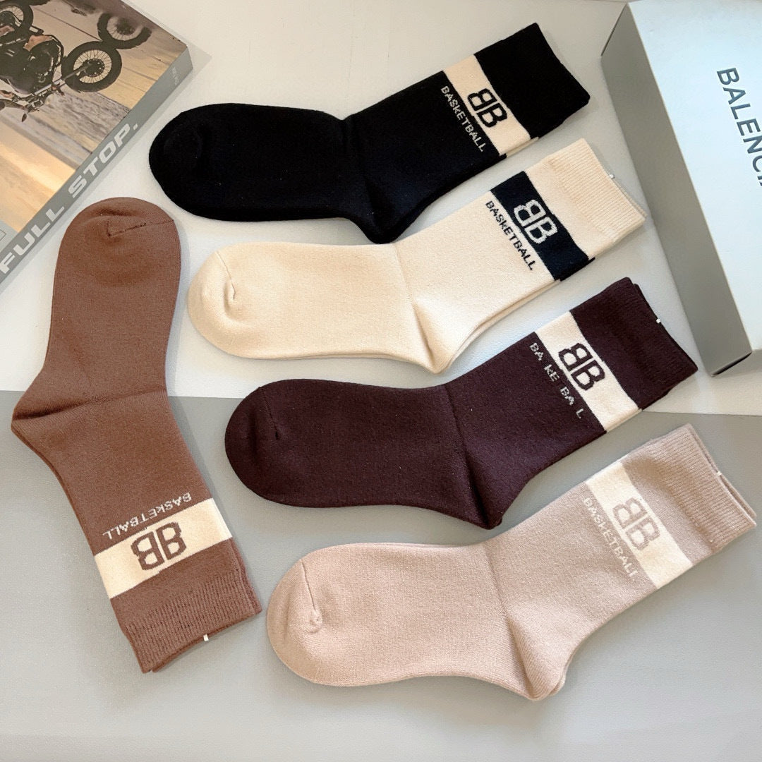 Elevate your wardrobe with the Balenciaga Classic High Cashmere Stockings for women. Crafted from ultra-soft cashmere, these stockings offer unparalleled comfort and style. Featuring iconic logo lettering, they are both fashionable and versatile—perfect for any fashionista. Each box includes five pairs, making it easy to mix and match with your favorite outfits. Enhance your collection with these must-have essentials today!