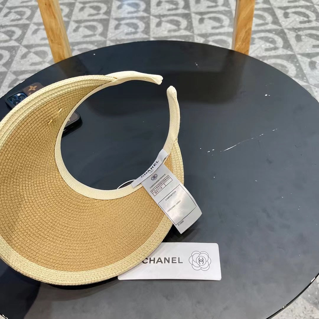 Stay stylish and protected from the sun with the Women's Chanel Summer Straw Hat. Designed for beach outings and travel, this hat features a large brim that offers exceptional sun protection. Its lightweight straw construction ensures breathability, while the empty top design keeps you cool under the sun. With built-in anti-UV capabilities, this hat is the perfect accessory for summer adventures. Elevate your outdoor look with this chic and functional piece from Chanel.