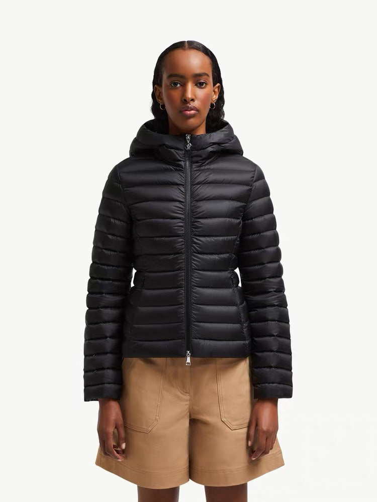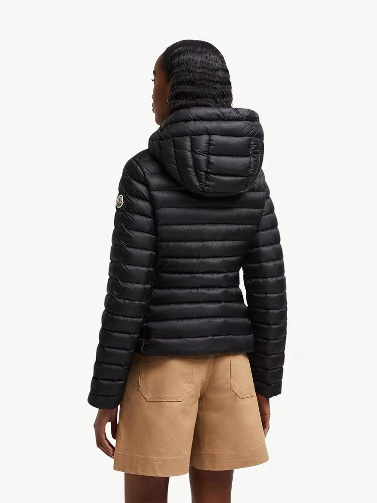 Elevate your winter wardrobe with the Moncler Ige Hooded Short Down Jacket for women. Crafted from premium longue saison nylon fabric, this stylish jacket provides warmth without bulk, making it perfect for mild weather. Featuring a chic cropped silhouette, classic hood, and a nipped-in waist, it offers a flattering and feminine fit.