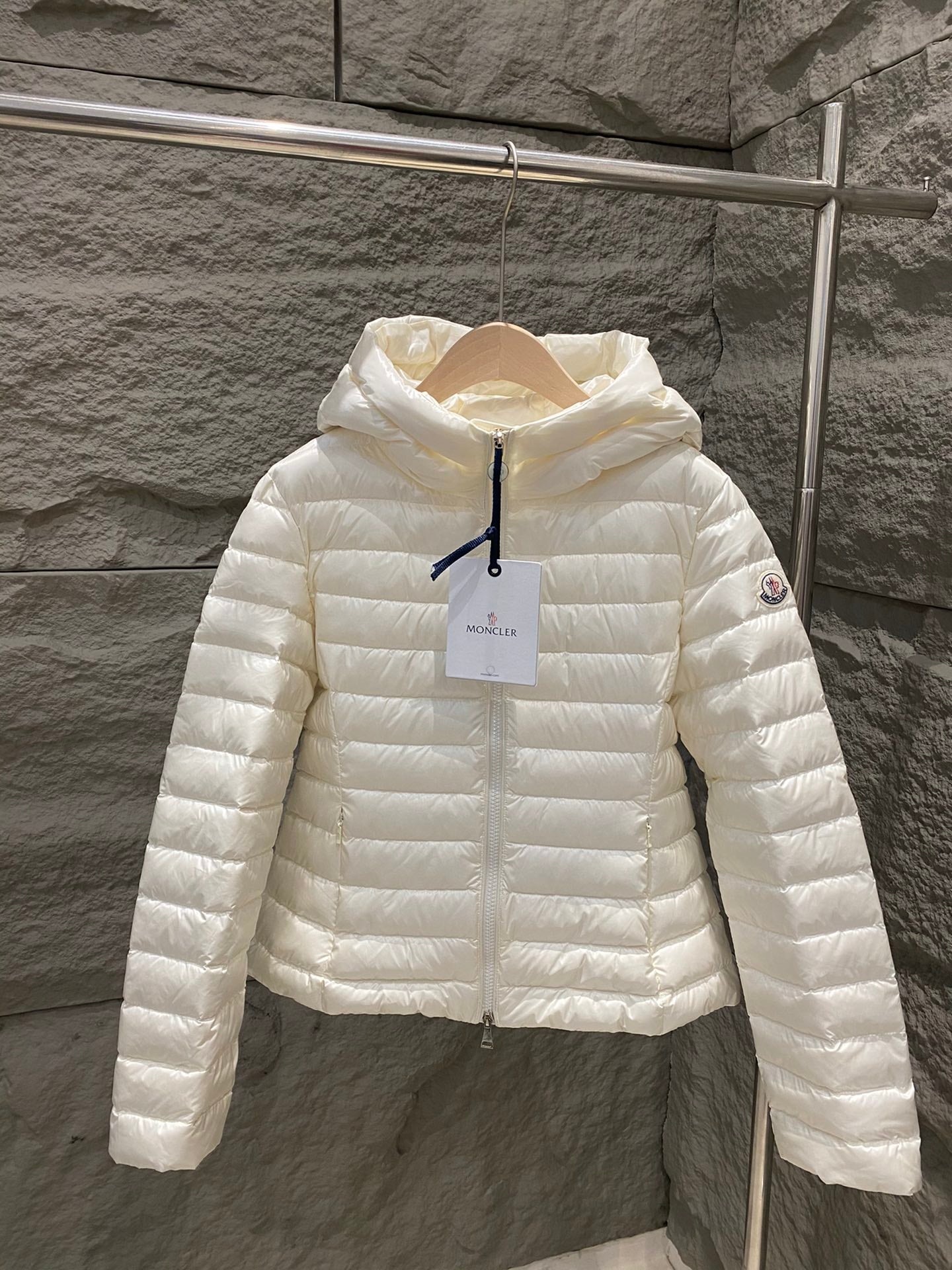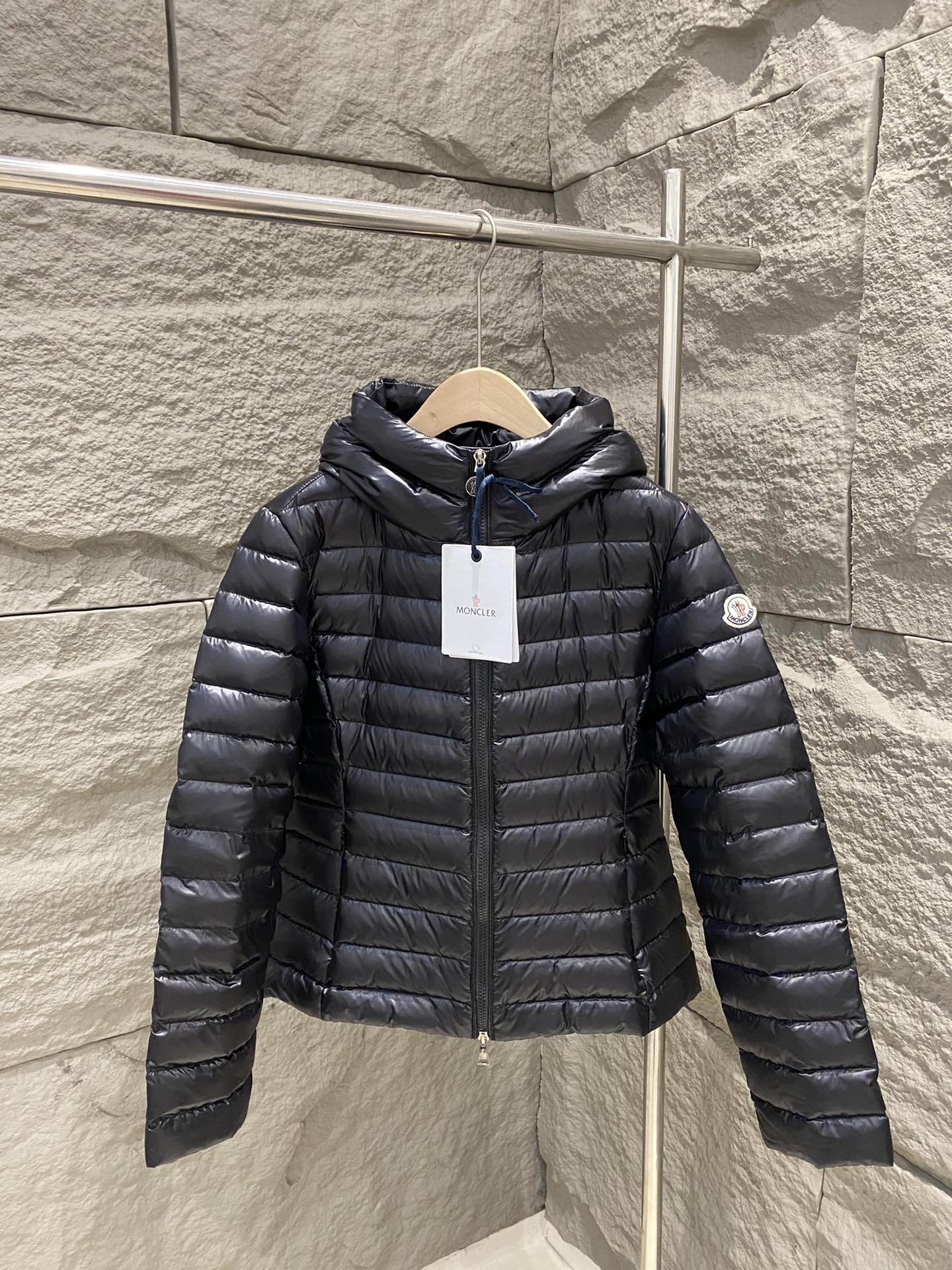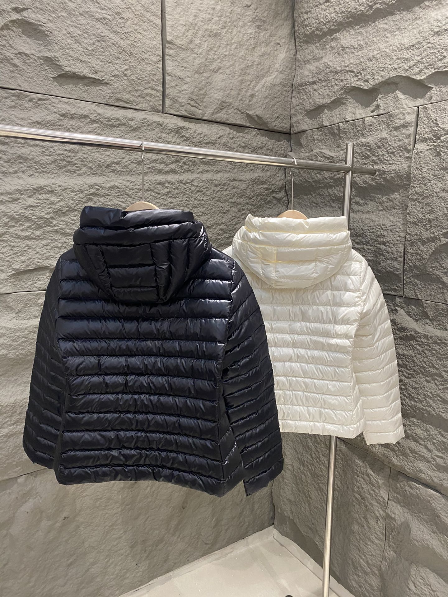 Elevate your winter wardrobe with the Moncler Women's Hooded Cropped Down Jacket. Crafted from lightweight Longue Saison fabric, this jacket offers warmth without bulk, making it perfect for mild weather. Its cropped silhouette features a classic hood and a cinched waist, enhancing your figure for a sleek, feminine look. Available in timeless black and white, this stylish jacket comes in sizes 1, 2, 3, and 4. Stay cozy and chic this winter with Moncler.