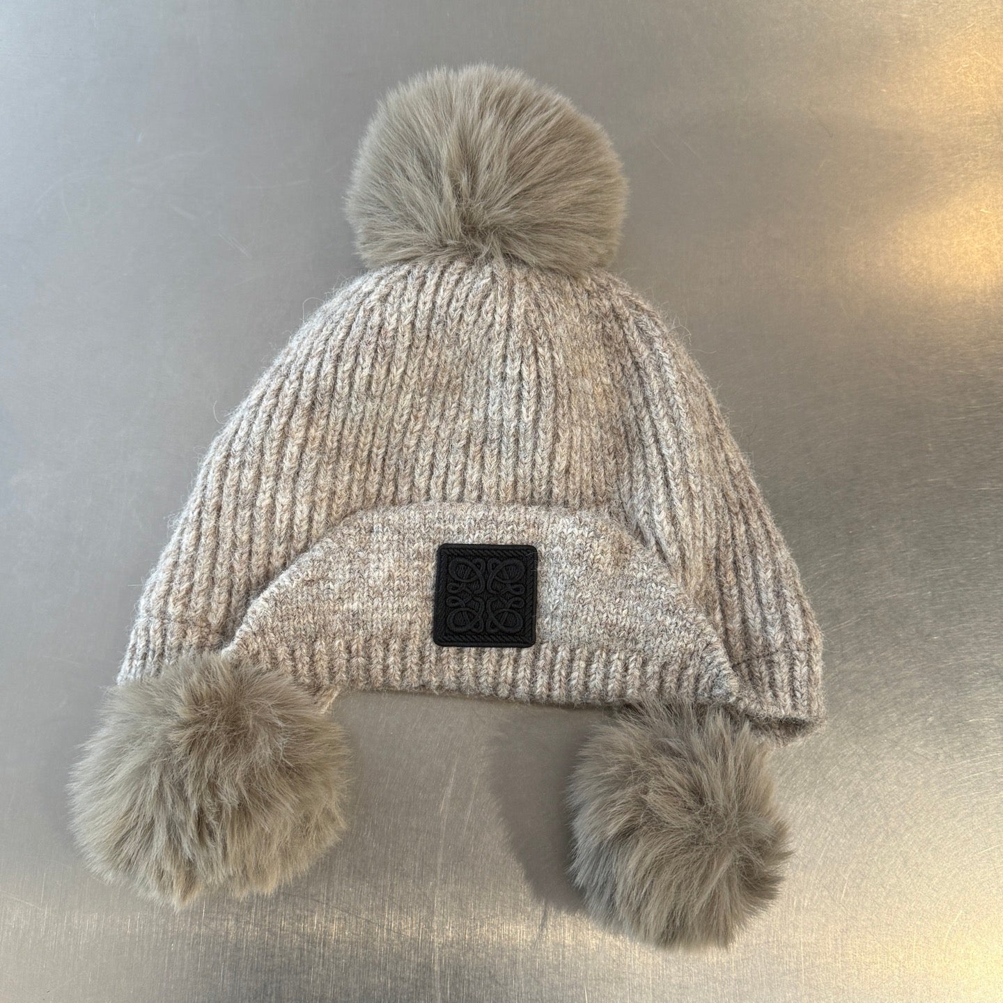 Women's Loewe Fluff Ball Knitted Beanie - Cozy Autumn & Winter Hat