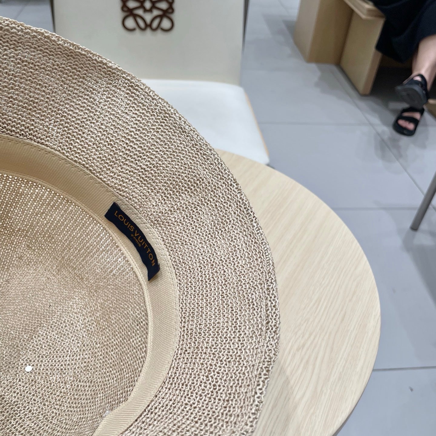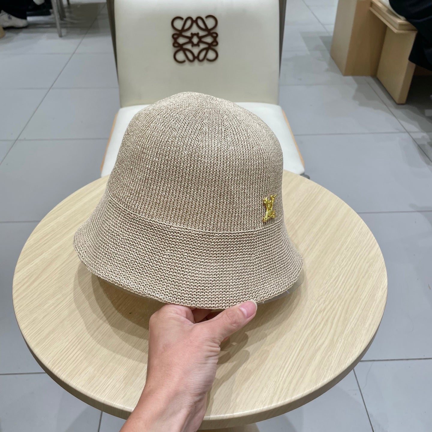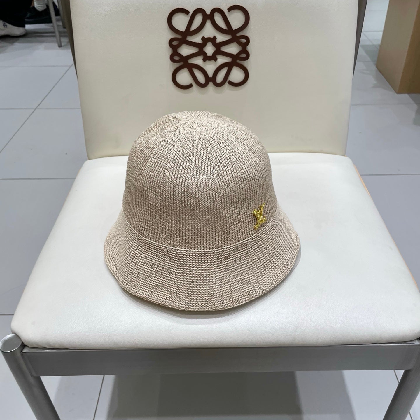 Elevate your spring and summer style with the LV Louis Vuitton Japanese paper-thin breathable knitted fisherman hat. Designed for women, this versatile basin hat complements your look without makeup, offering a trendy small bucket hat silhouette that beautifully frames your face. Perfect for outdoor adventures or casual outings, this hat is a must-have accessory for the season. Embrace effortless elegance and comfort while showcasing your unique sense of fashion.