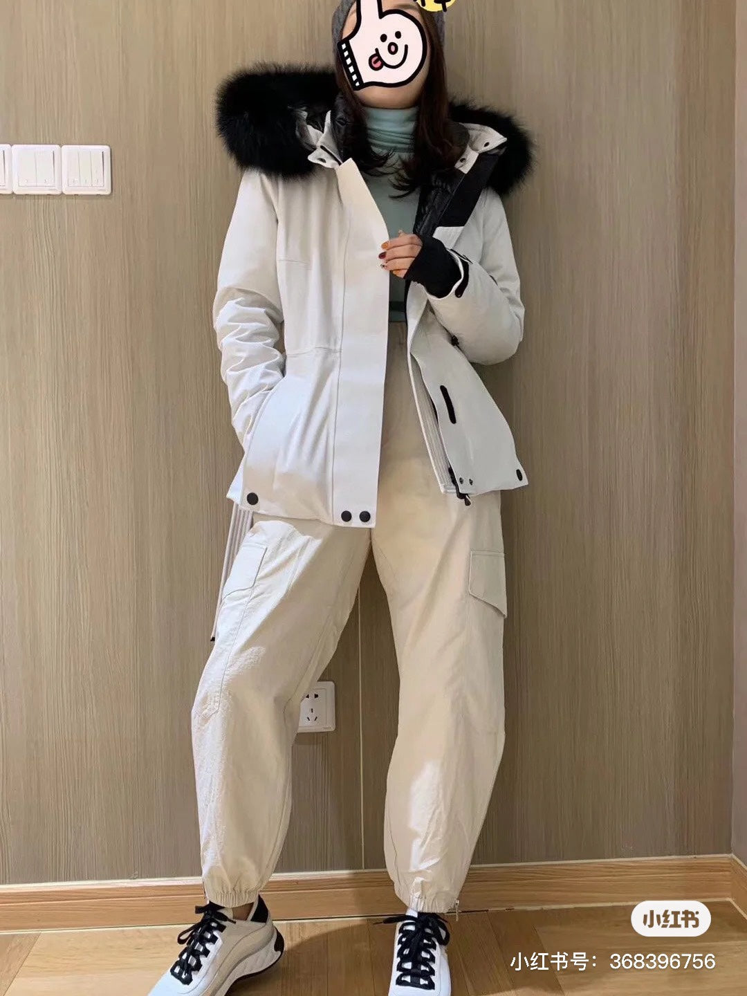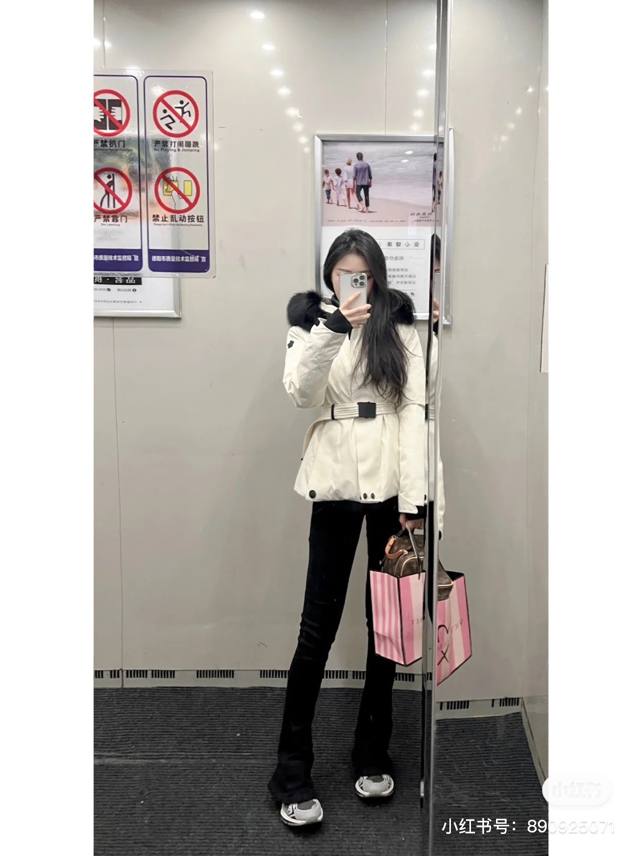 Constructed from durable polyester and featuring a GORE-TEX membrane, it offers superior wind protection while maintaining breathability. The sleek design is accentuated by a waist belt that enhances your silhouette, while the removable fur trim on the hood ensures versatility for any weather conditions.
