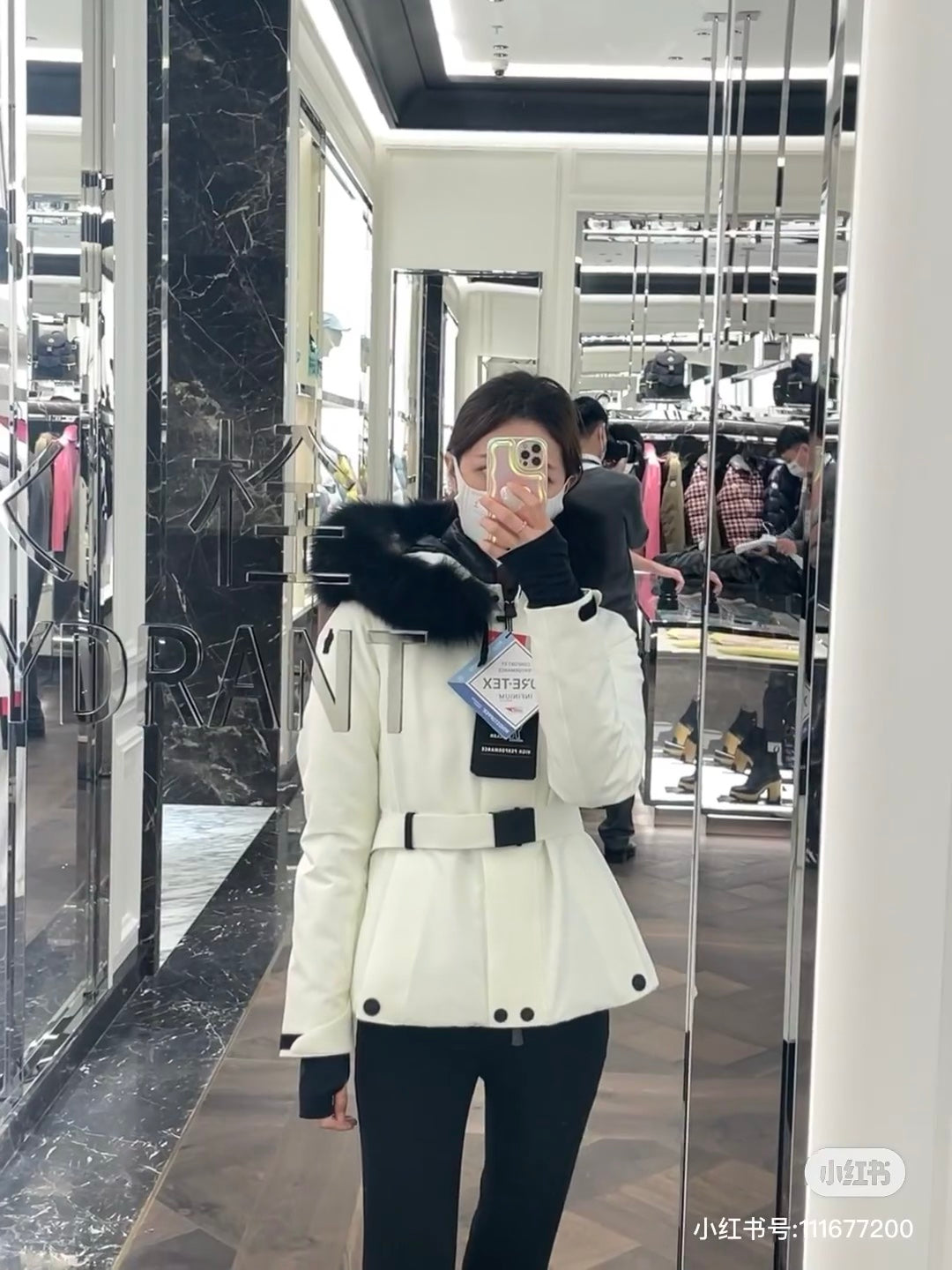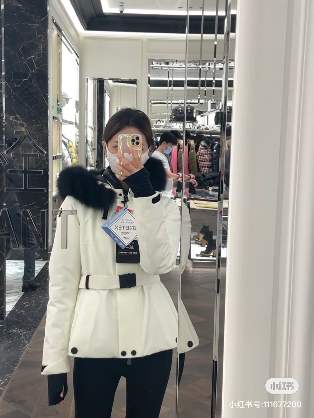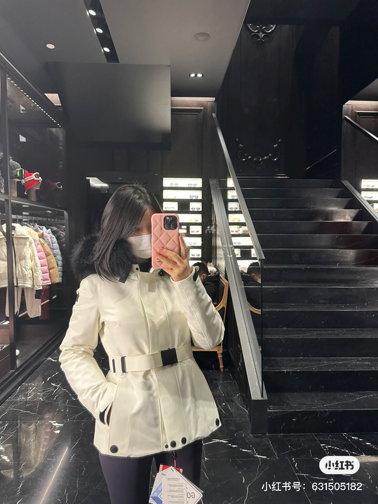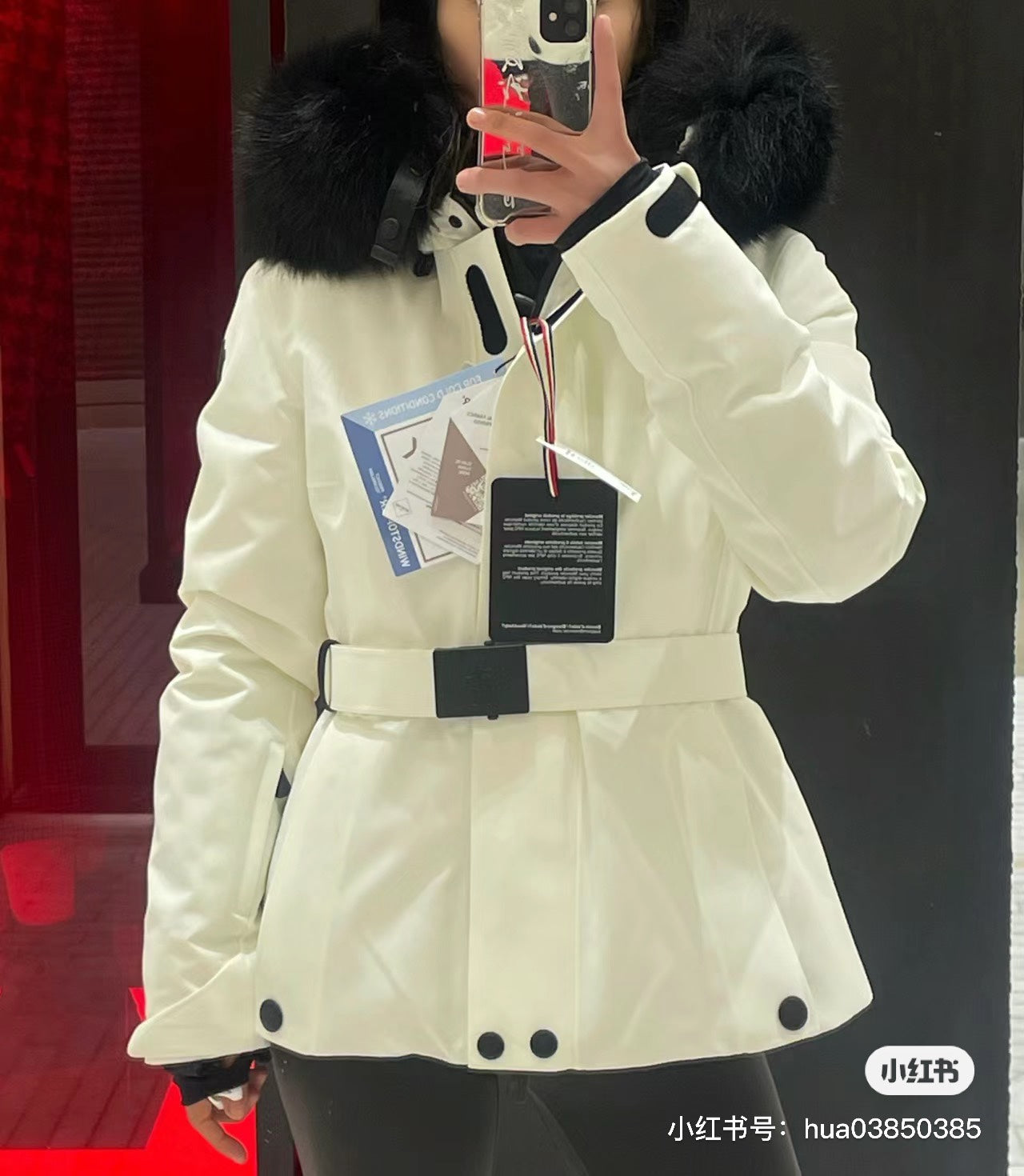 Designed with a sleek and feminine silhouette, the jacket includes a stylish belt to enhance your figure, while the removable fur trim on the hood allows for versatile styling in changing weather conditions.
