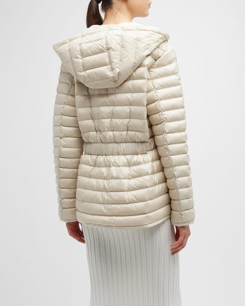 With an elastic waistband that merges comfort with a flattering fit, this jacket is perfect for a wide age range. Filled with 95% premium white goose down, it provides exceptional insulation while keeping you light on your feet. Available in classic beige and black, and sizes ranging from 0 to 4, this jacket is a must-have for the modern woman seeking both elegance and functionality.