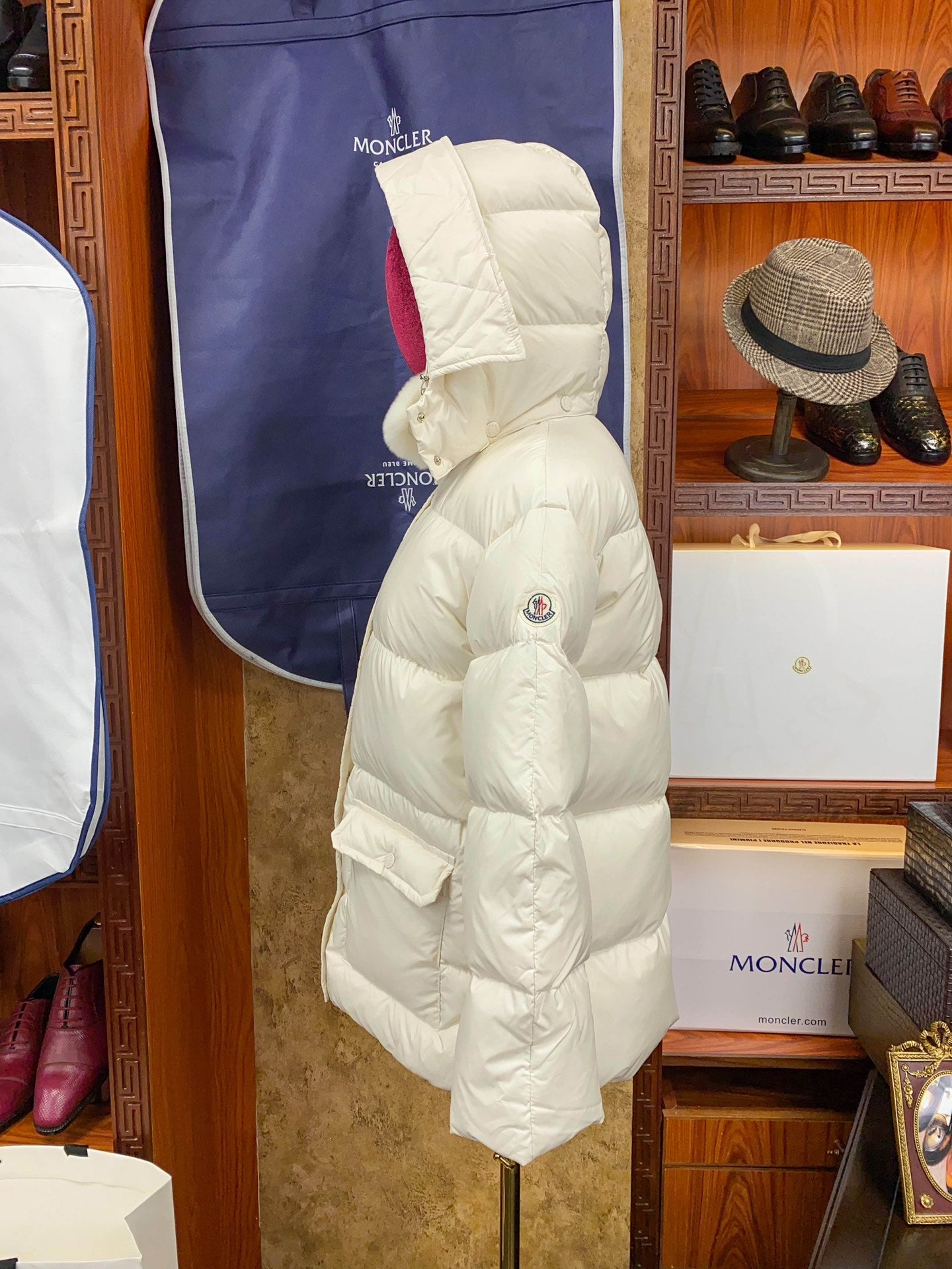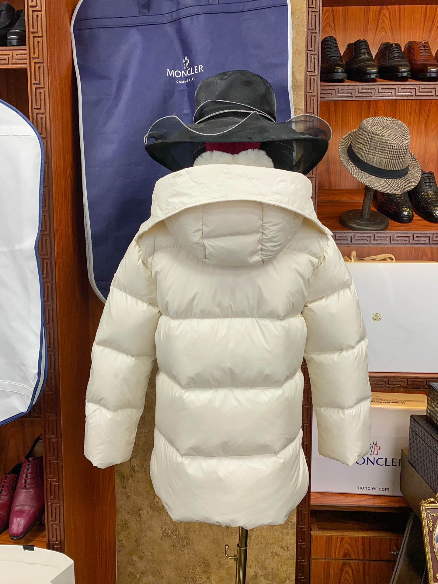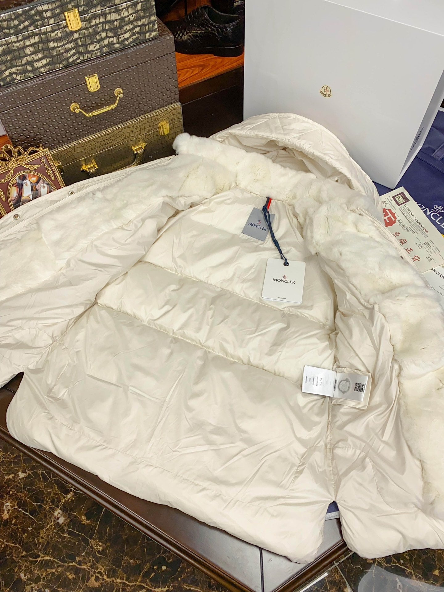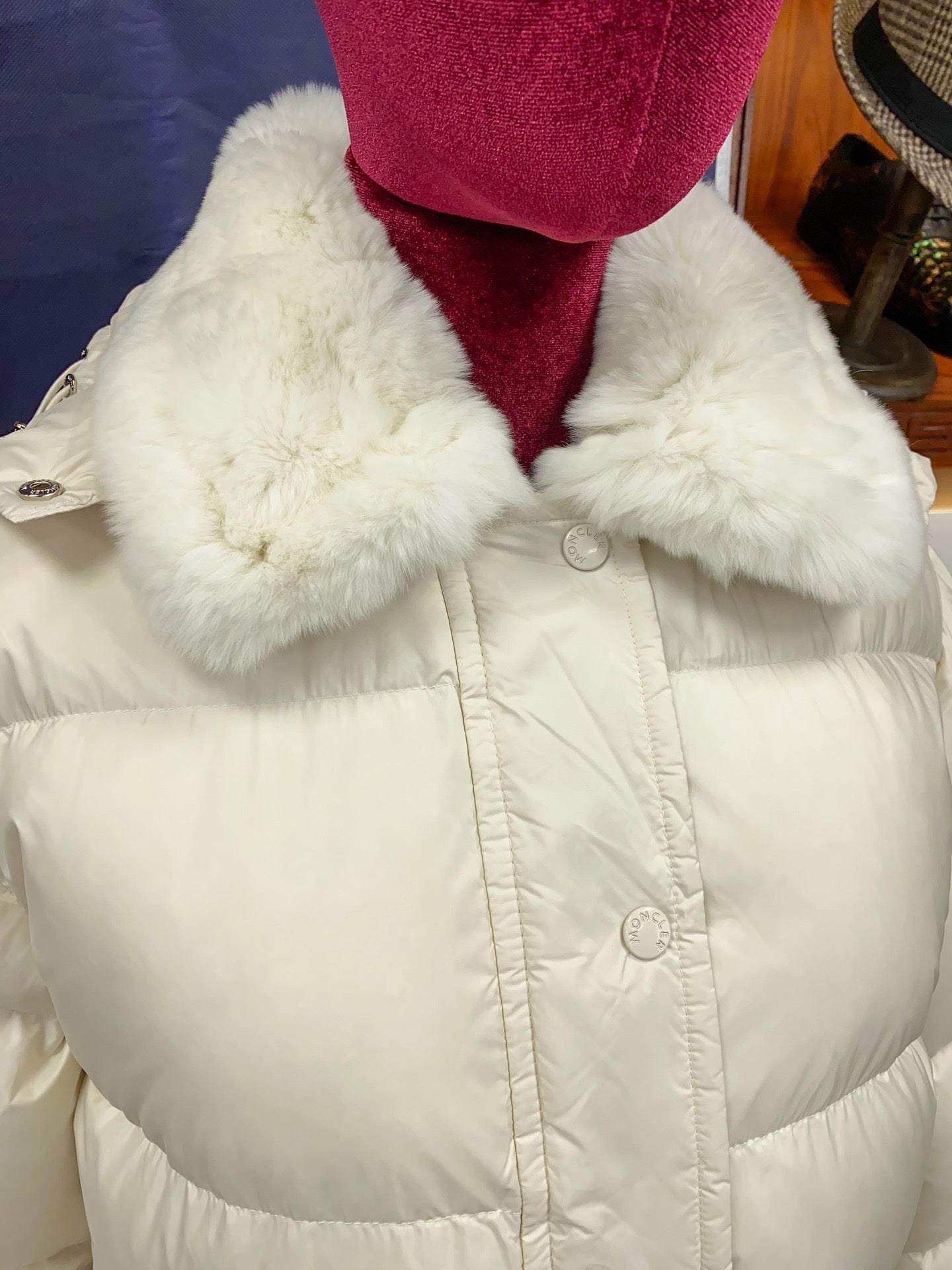 Women's Moncler Rex Rabbit Fur Collar Down Jacket – Luxurious Khaki White