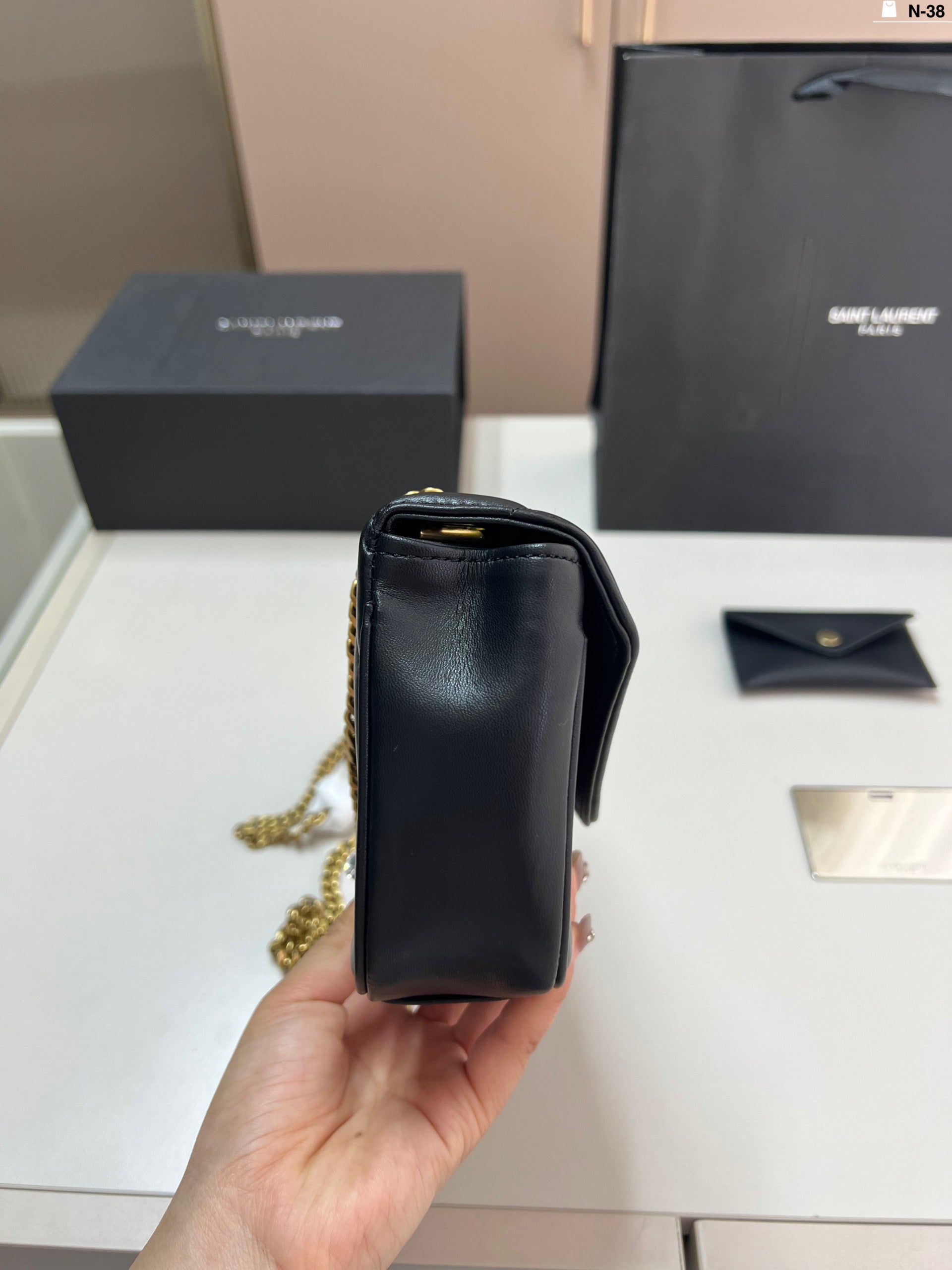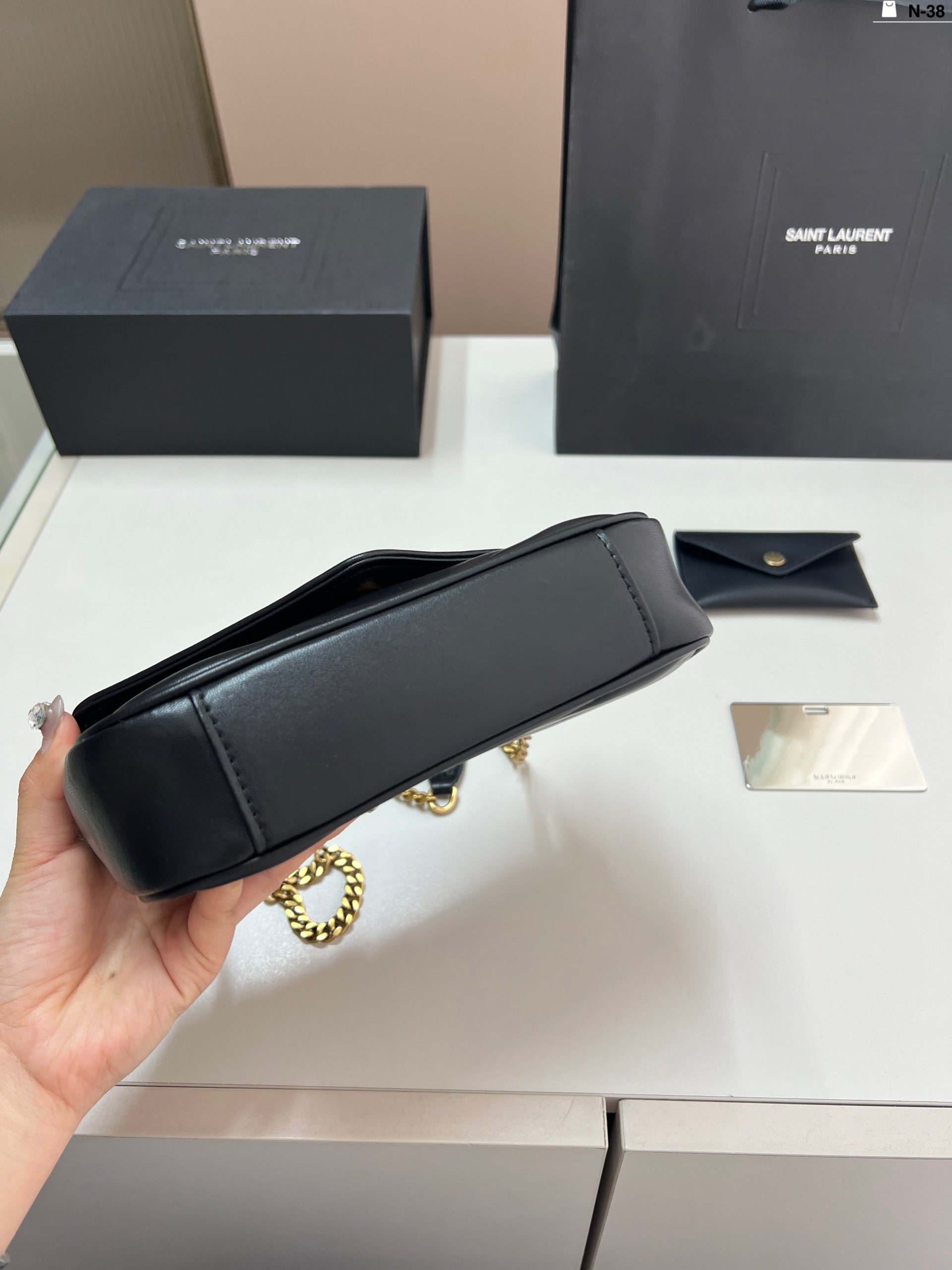 Introducing the YSL Calypso Cloud Bag, crafted from luxurious soft bubble nappa leather. This versatile handbag combines the timeless elegance of a baguette bag with the stylish functionality of an envelope design. Measuring 20 x 10 cm, it offers just the right amount of space for your essentials while maintaining a chic profile. Elevate your accessory game with this sophisticated piece that effortlessly complements any outfit. Perfect for both casual outings and formal events, the YSL Calypso Cloud Bag is a must-have for fashion-forward individuals.
