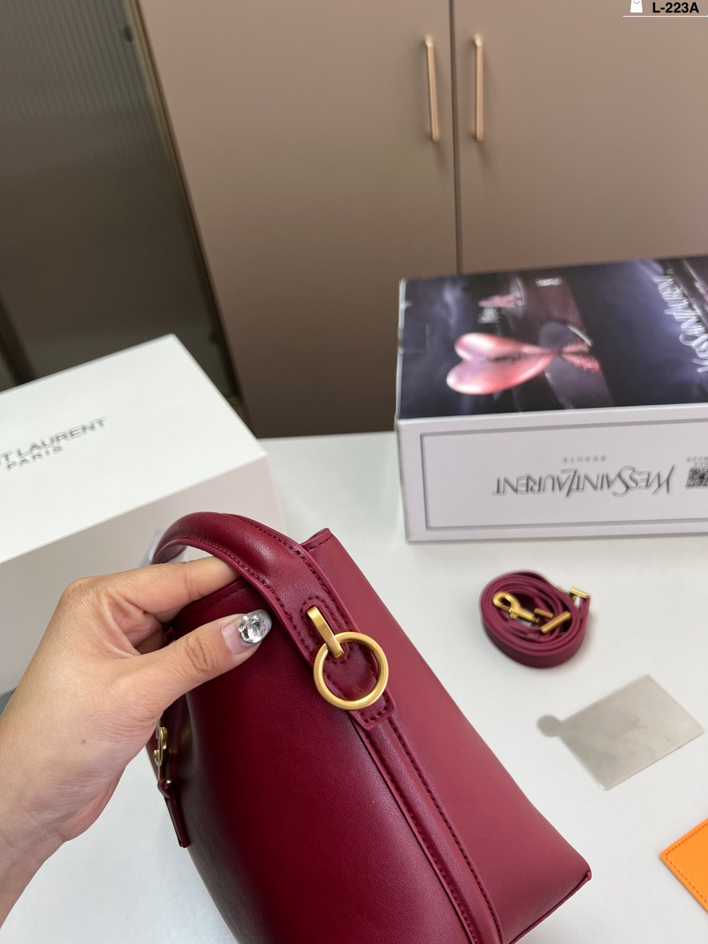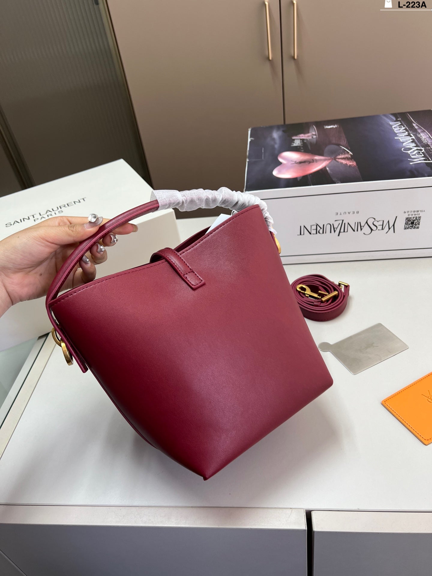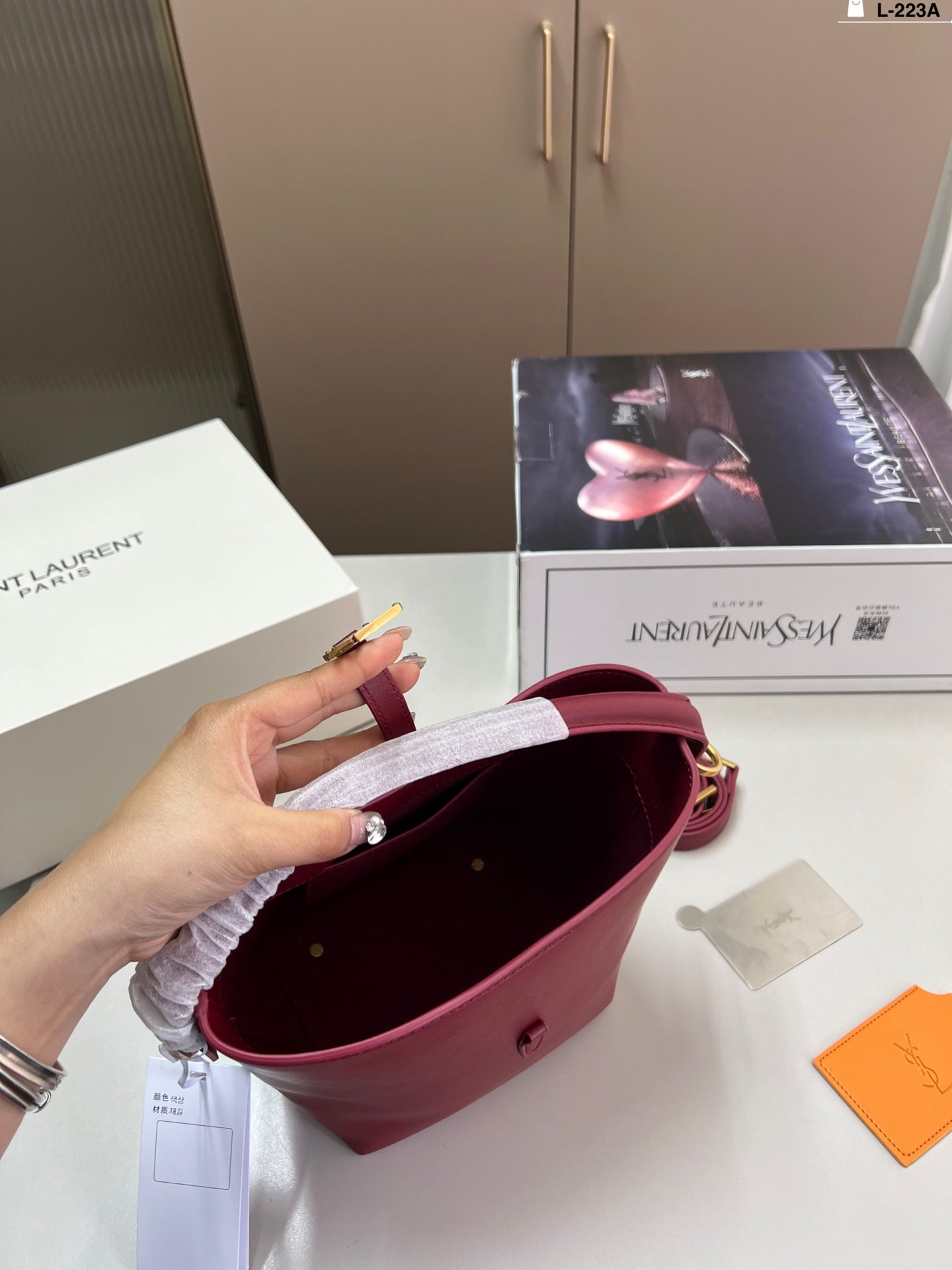 Elevate your accessory game with the YSL Saint Laurent Bucket Bag. Designed for versatility, this stylish bag effortlessly complements any outfit, making it perfect for various occasions. Whether you're heading out for a casual day or a night on the town, its relaxed crossbody style ensures comfort and ease of wear. With dimensions of 15 x 20 cm, this sleek folding box design adds a touch of sophistication to your ensemble. Discover the perfect blend of luxury and practicality with this must-have bag.