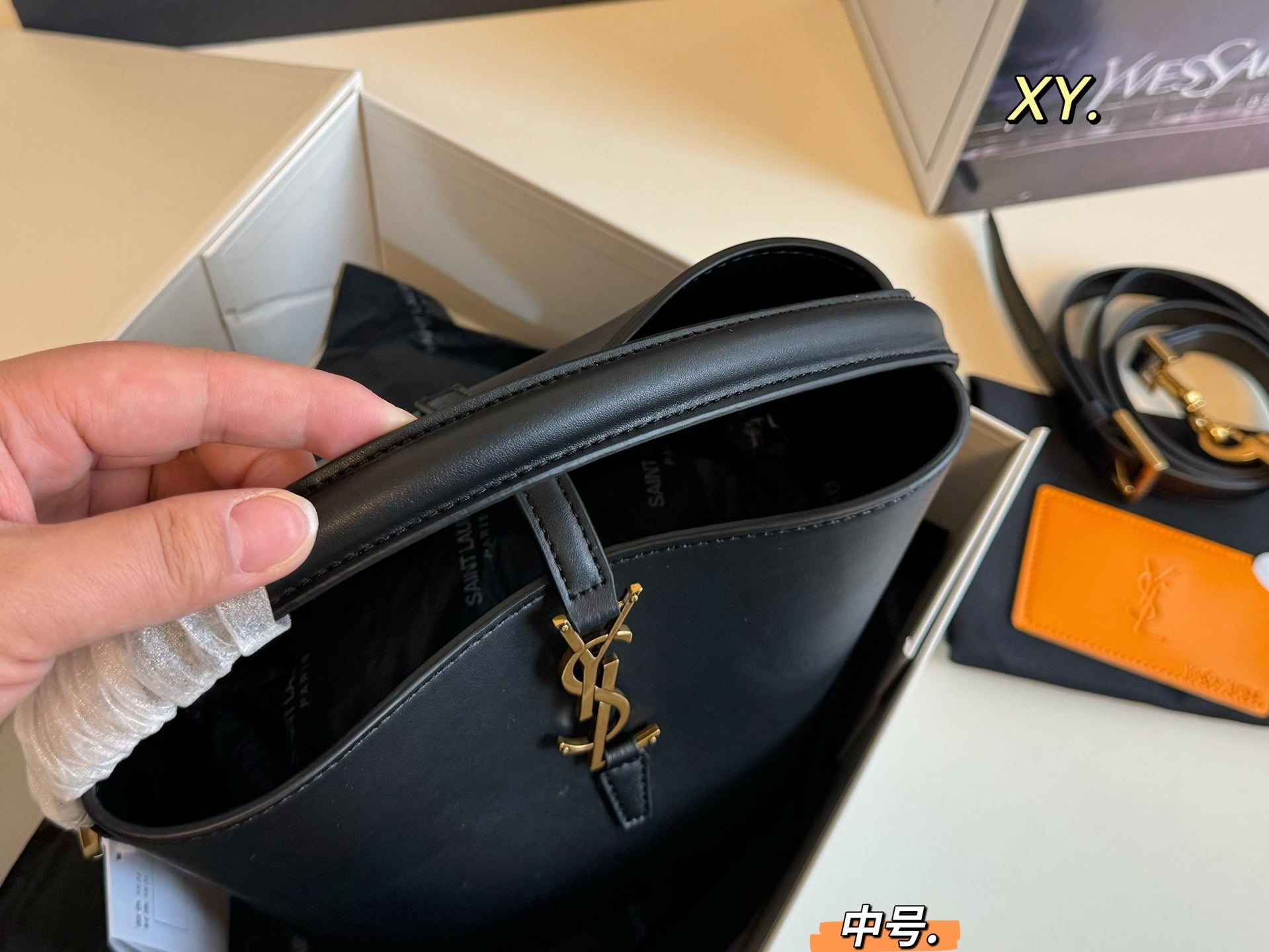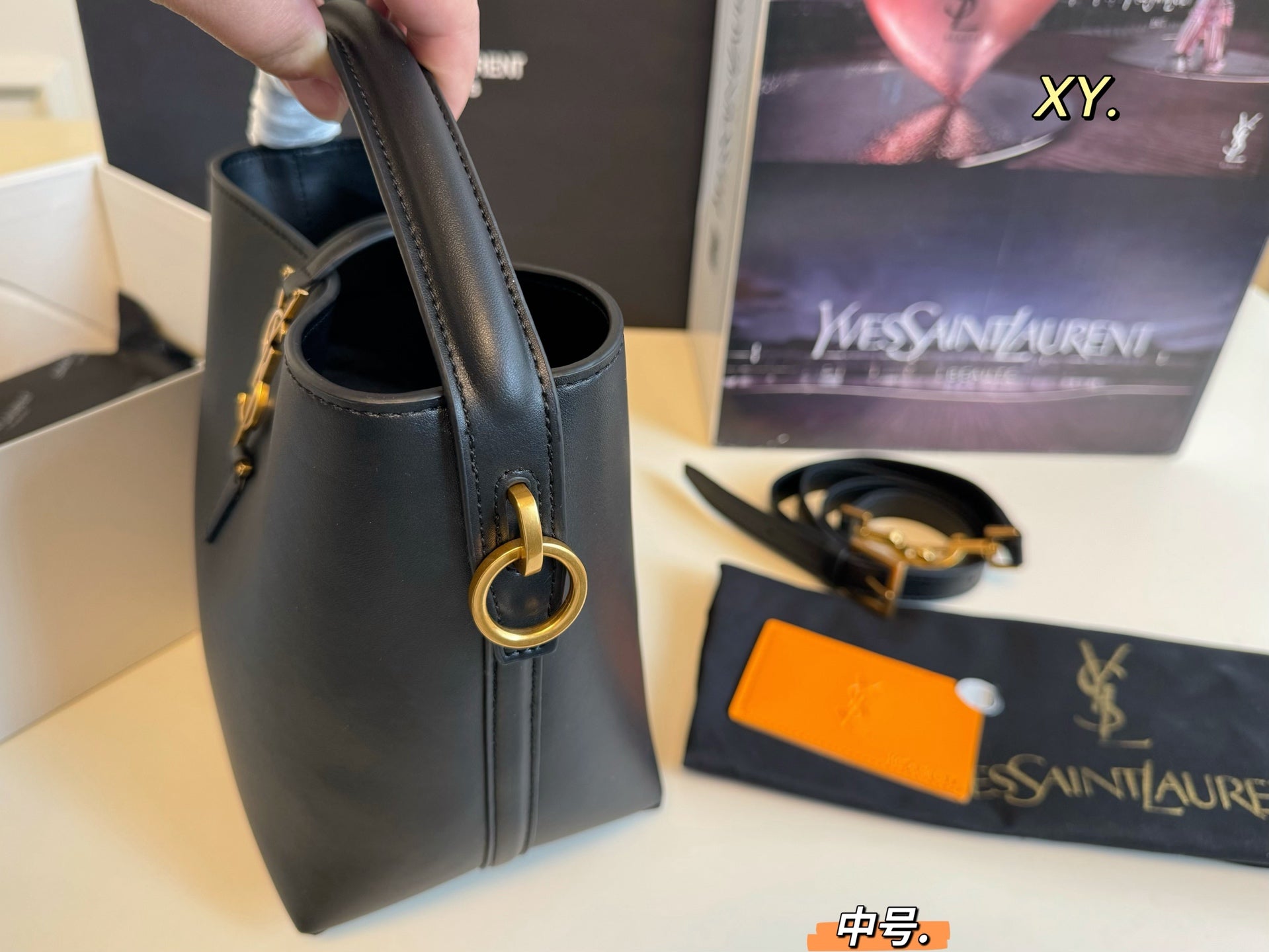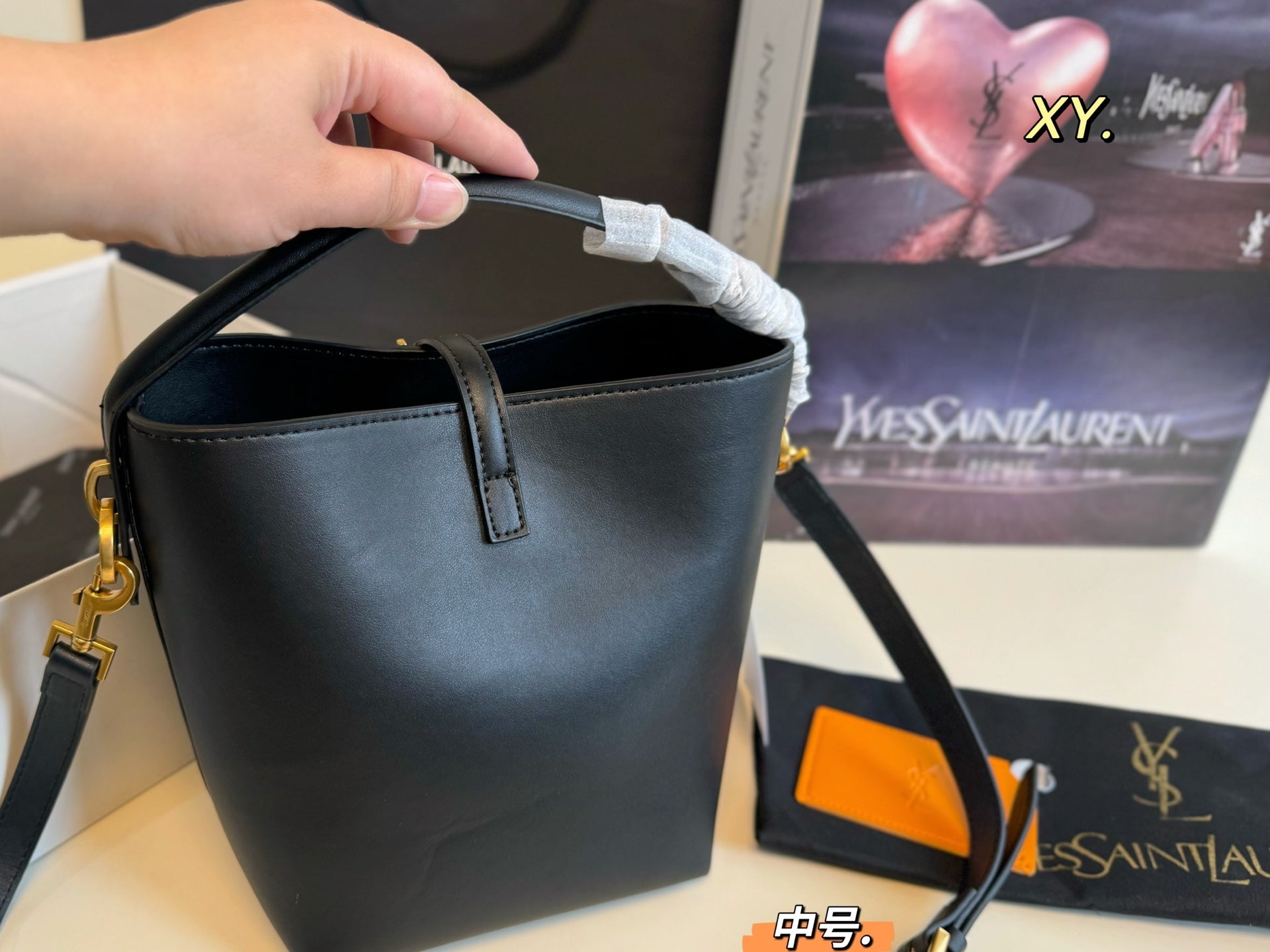 Elevate your accessory game with the YSL Saint Laurent Hobo Bucket Bag. This medium-sized shopping bag (15×20 inches) combines a sleek design with premium texture, ensuring a luxurious feel. Its spacious interior offers ample room for your essentials, making it perfect for everyday use or a day out. The bag features a convenient interior mirror, adding a practical touch for on-the-go adjustments. Ideal for fashionable women and street photographers, this stylish hobo bag is a must-have addition to your wardrobe. Embrace sophistication and functionality with this chic accessory.