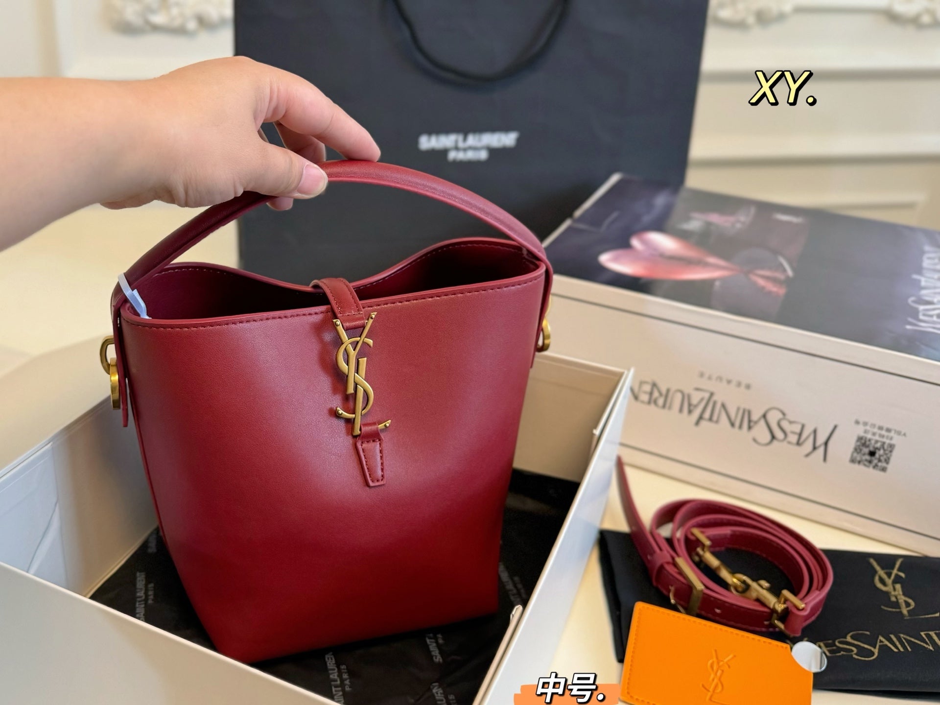 Elevate your everyday style with the YSL Saint Laurent Medium Hobo Bucket Bag, designed for fashionable girls and street photographers alike. Measuring 15×20, this chic shopping bag offers a sleek, minimalistic aesthetic paired with a luxurious texture. Its spacious interior ensures you can carry all your essentials with ease, while the convenient shoulder strap allows for comfortable wear. Inside, you'll find a handy mirror for quick touch-ups. This versatile bag is a must-have accessory that combines functionality with elegance—a perfect addition to any wardrobe.