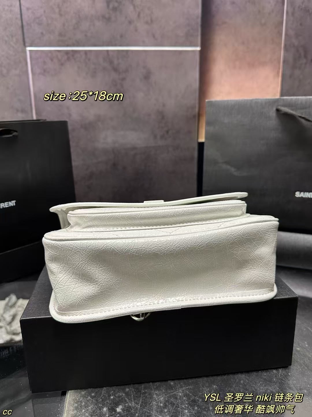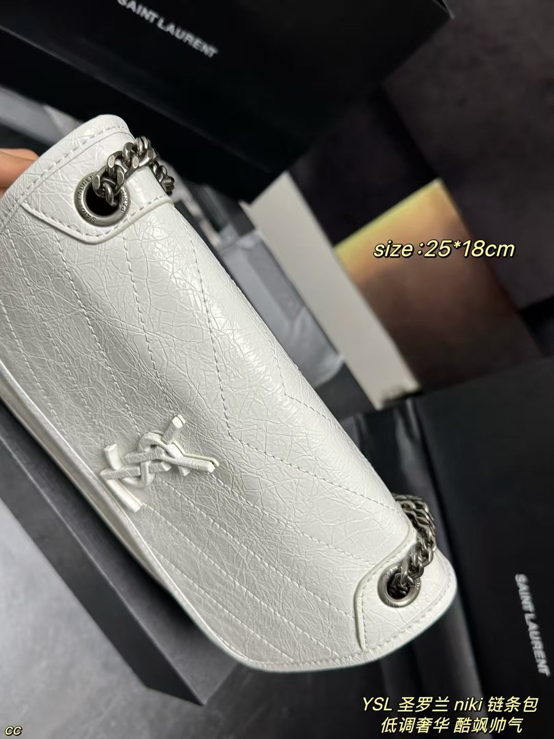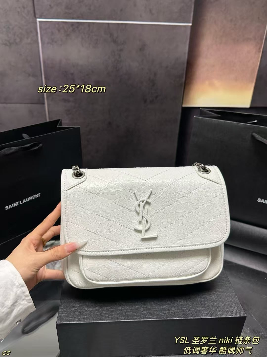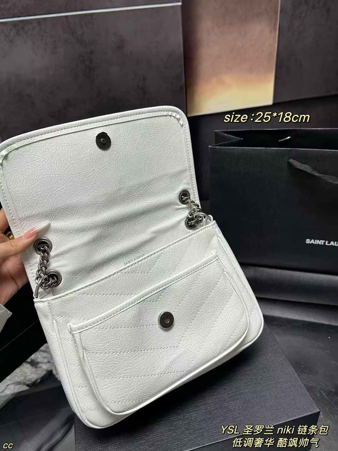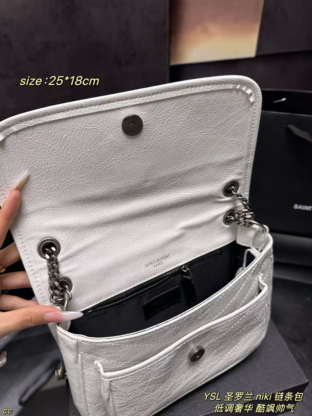 Elevate your accessory game with the YSL Saint Laurent Niki Chain Bag. This timeless piece combines style and practicality, featuring a lightweight design and ample space for your essentials. Crafted with durability in mind, its appealing aesthetic makes it the perfect complement to both chic and casual outfits. Ideal for those with a cool, sophisticated style, this versatile bag is a must-have for every modern wardrobe. Dimensions: 25 x 18 cm.