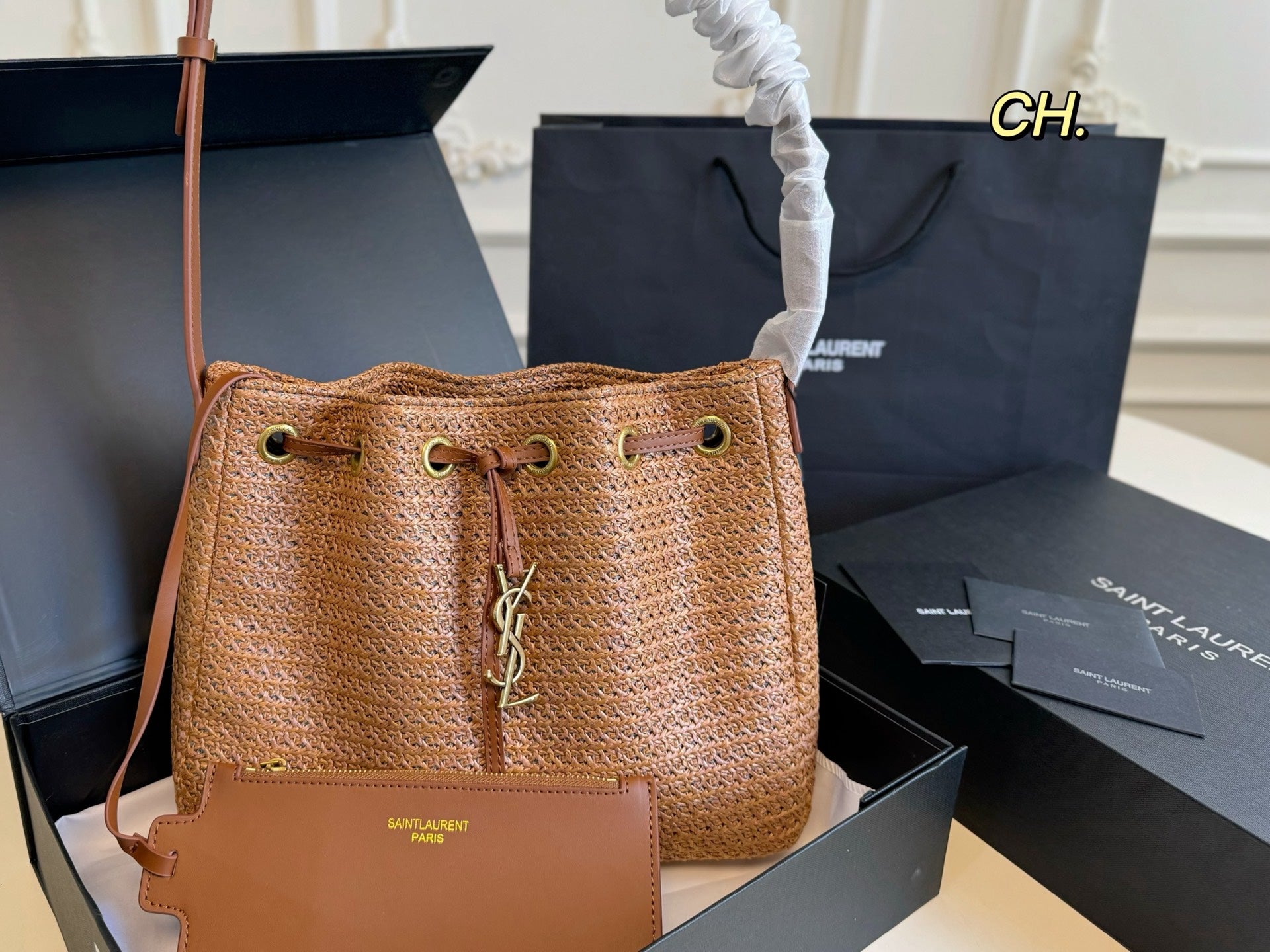 Embrace the essence of summer with the YSL Saint Laurent Straw Summer Underarm Bag. Measuring 29x23 cm, this chic and breathable straw bag effortlessly captures the light, carefree spirit of the season. With its simple and elegant design, it perfectly complements your casual attire while adding a touch of sophistication. Enjoy the ideal blend of style and comfort, making it the perfect accessory for any summer outing.